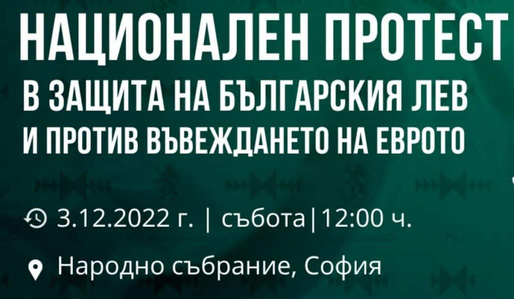 Протестът ще се проведе на 3 декември в 12:00 часа на пл. „Народно събрание“. От „Възраждане“ канят всички български граждани, които не са съгласни еврото да се въвежда в настоящия момент, да се присъединят към демонстрацията.