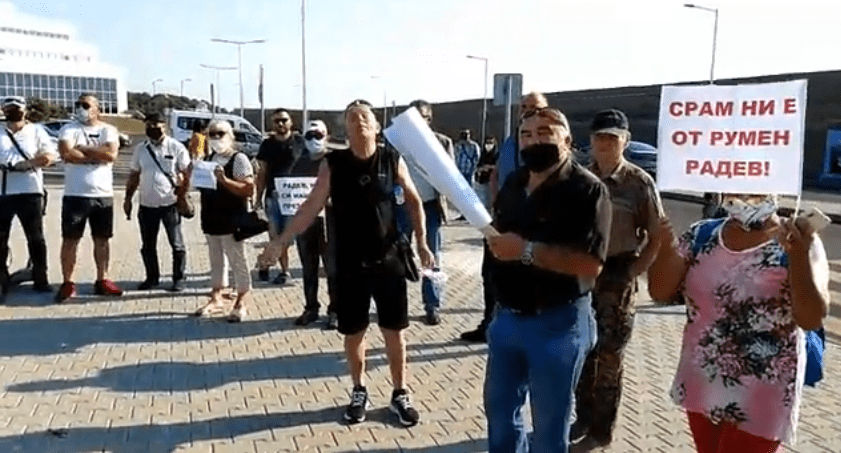 На пристанището има група протестиращи, предаде репортер на Искра.бг. Те държат различни лозунги.
