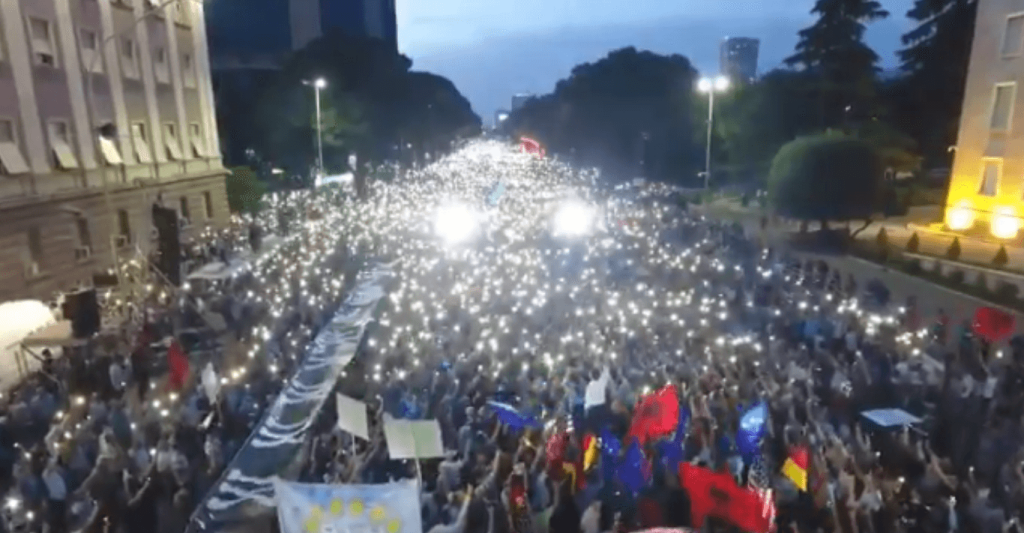 Съобщението на Мета се е появило малко преди протестиращите да започнат да хвърлят димящи бомби пред сградата на парламента в столицата Тирана.