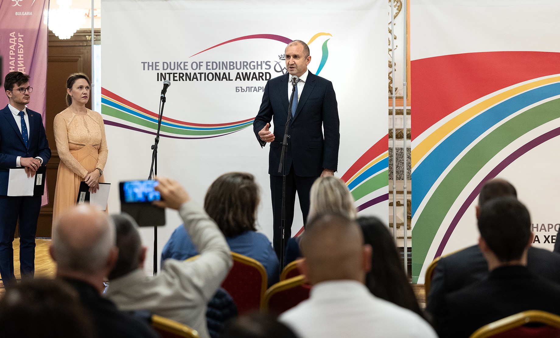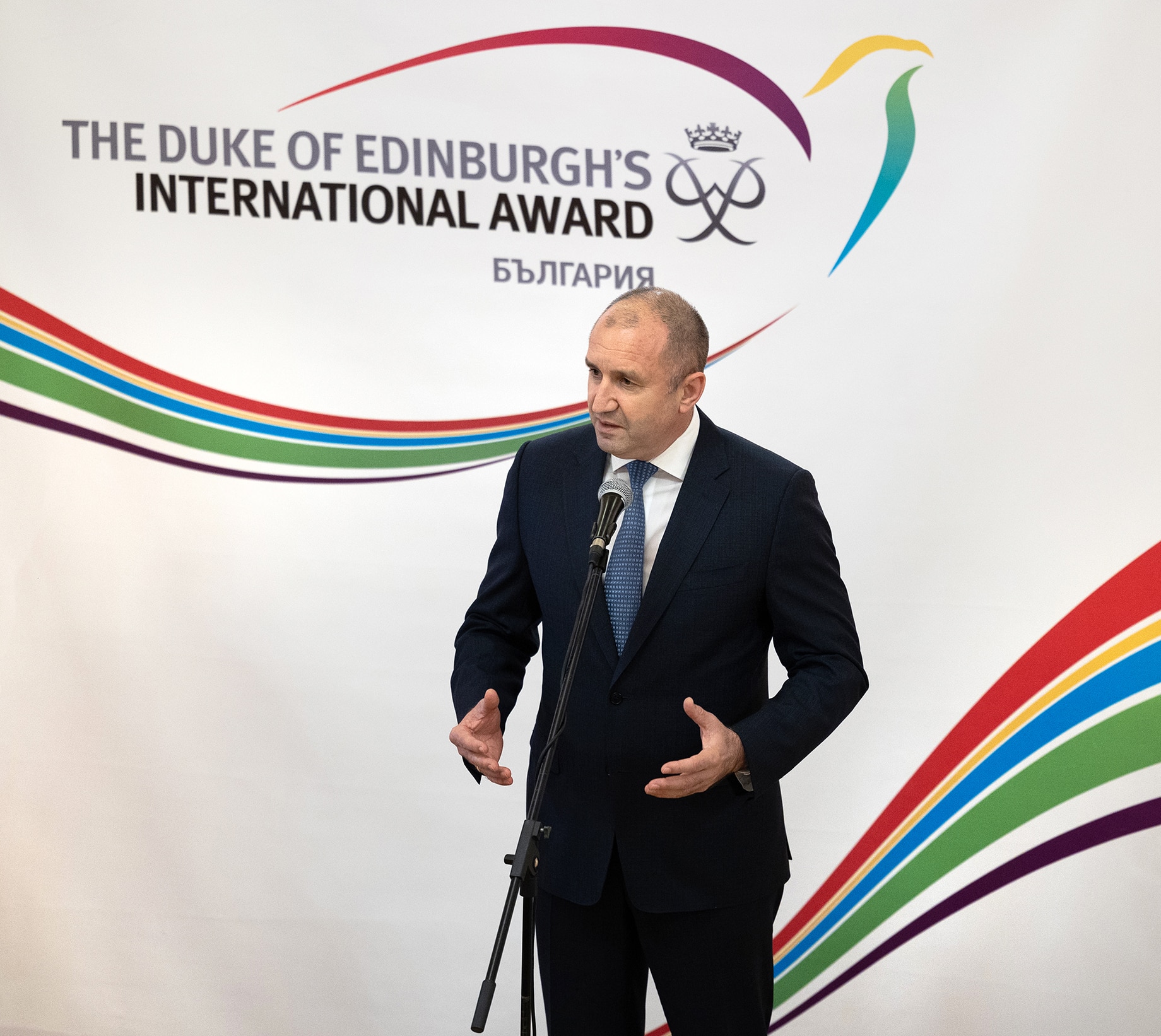 С тези думи президентът Румен Радев се обърна към отличените младежи, постигнали златно и сребърно ниво в младежката програма „Международна награда на херцога на Единбург – България“. На тържествената церемония държавният глава, който е патрон на престижната международна награда у нас, връчи почетни значки на отличените участници.