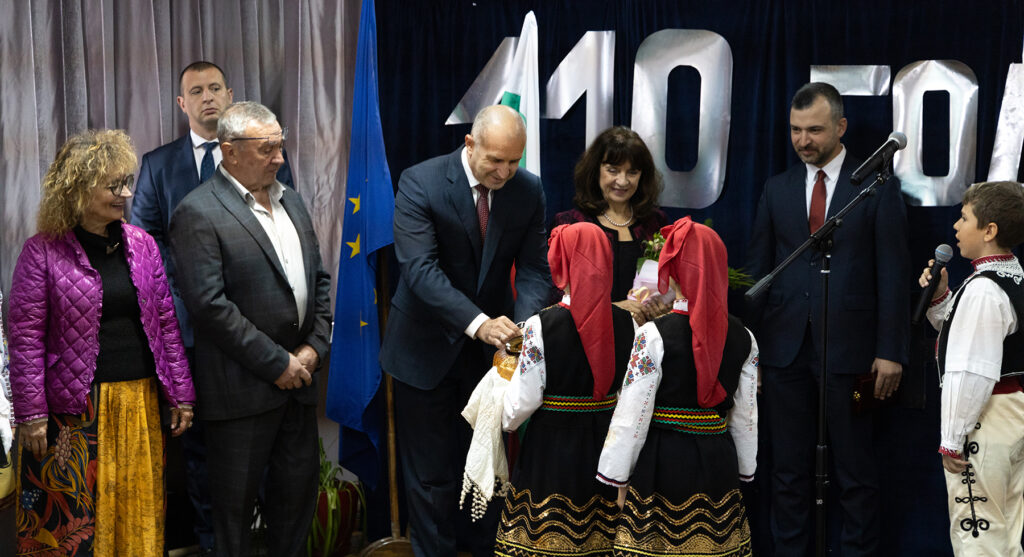 „Наред с модерните форми и методи на обучение, които непрекъснато се внедряват, в училището се пазят и обогатяват традициите и се съхраняват устоите на българския дух, духовност и просвета“, каза в приветствието си президентът Радев, като оцени високо усилията на ръководството на учебното заведение, на учителите и на настоятелството.