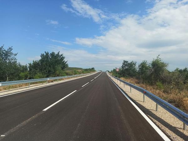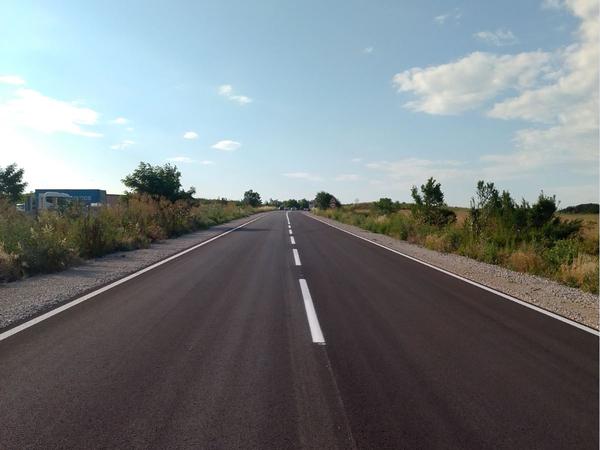 Ремонтните дейности на общо 9 км от първокласния път продължават с изграждане на канализация в село Радиево, поради което срокът за завършването на обекта е до септември.