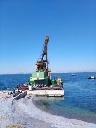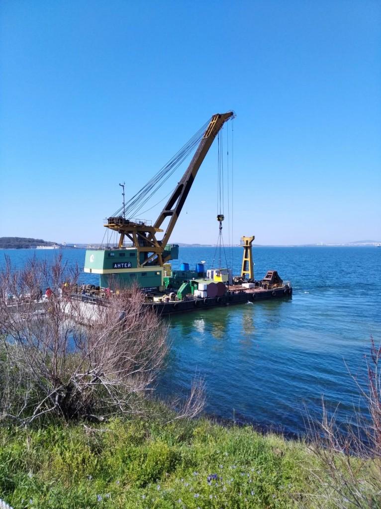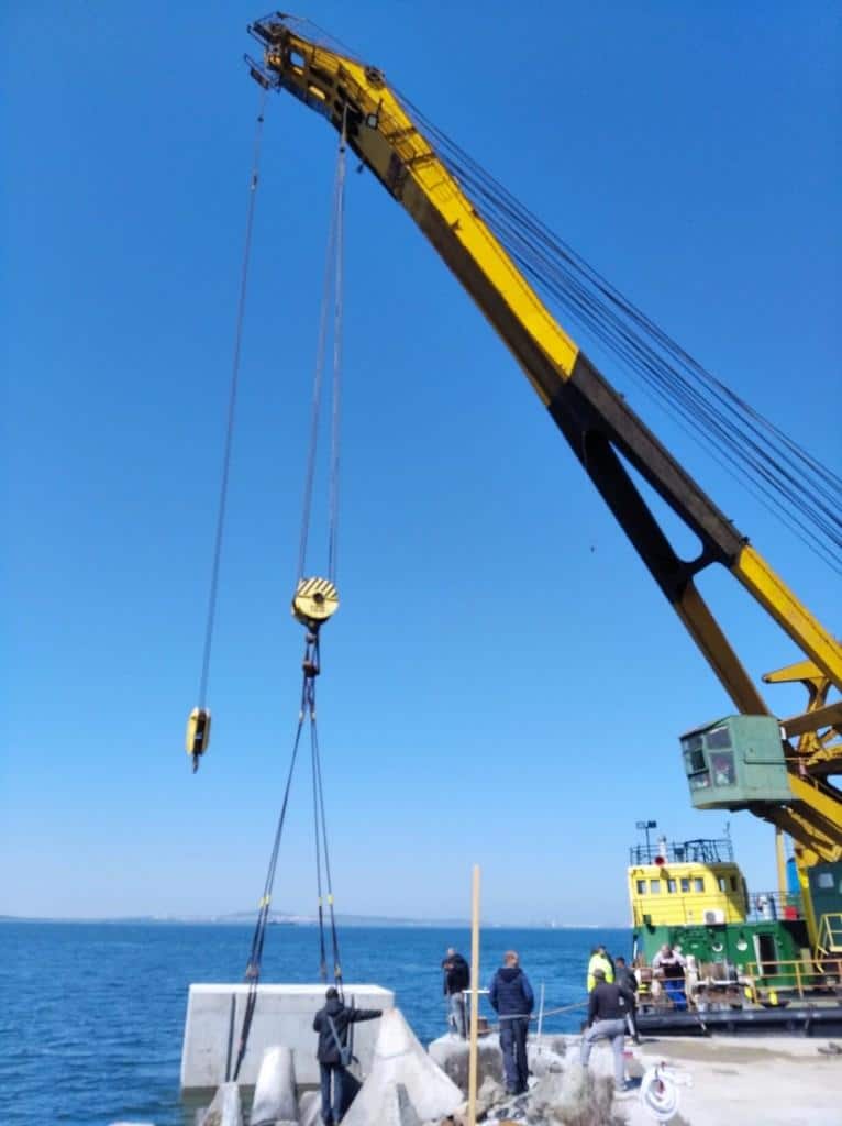 Пристигна плаващият кран, който ще работи по разширяването на пристана на о. Света Анастасия