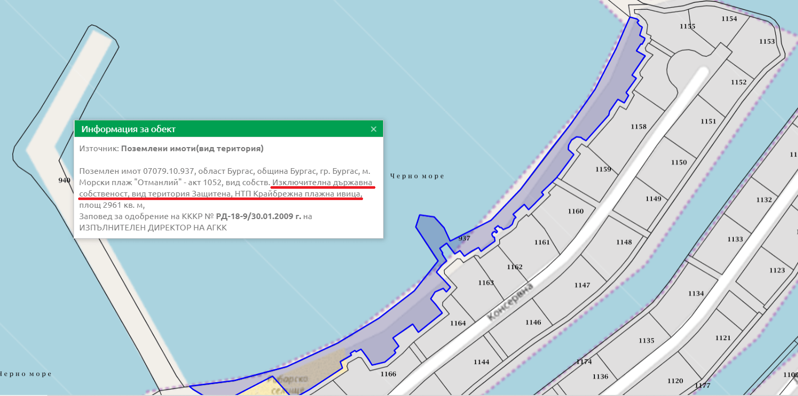 Има няколко постройки, които са изградени върху пясъка, тоест върху плажна ивица, представляваща изключителна държавна собственост. Те не са отбелязани върху кадастралната карта. Защо?