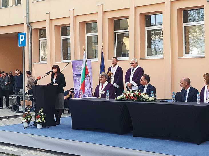 „През тези изминали години всички ние бяхме поставени в много тежка ситуация. Надявам се тази ситуация да е вече зад гърба ни, за да можем спокойно да работим с нашите студенти присъствено, да можем спокойно да извършваме нашите научни изследвания. Пожелавам Ви да бъдете много здрави, много ентусиазирани и наистина да развивате Медицинския университет напред, така както досега са го правили вашите предшественици.“