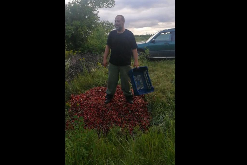 „Това са 500 килограма череши – днешният добив. За това съм платил на братята роми 250 лева за добив. А прекупвачите се подиграват с нас. Те с нас, а ние си правим кеф.“
