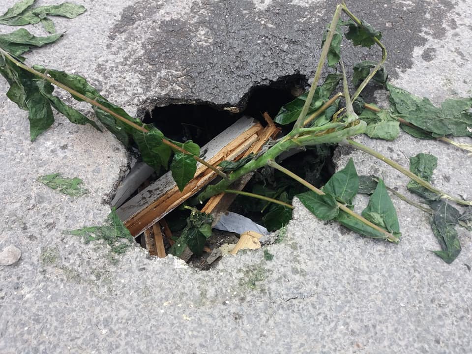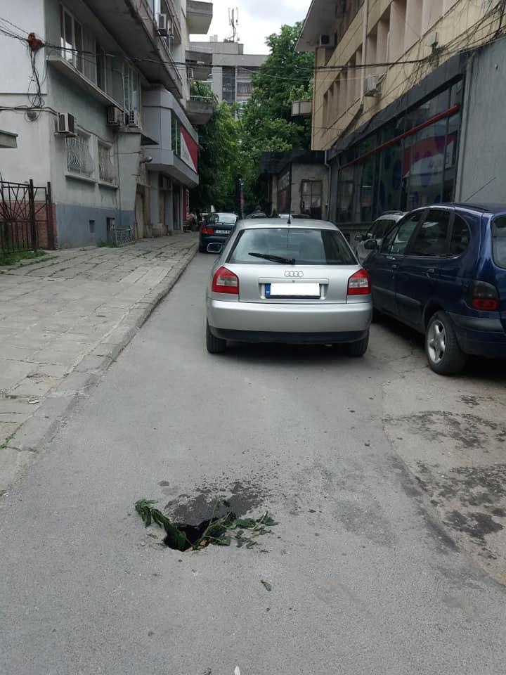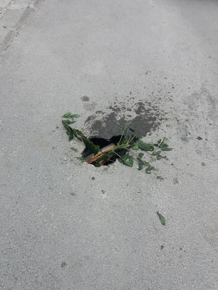 Асфалтът на улица „Марин Дринов“ в центъра на Шумен пропадна. За това съобщи жител на града като публикува снимки на дълбока дупка в социалната мрежа „Facebook“. От нея се подават клони и летви – най-вероятно сигнал към шофьорите, за да могат да видят „препятствието“.