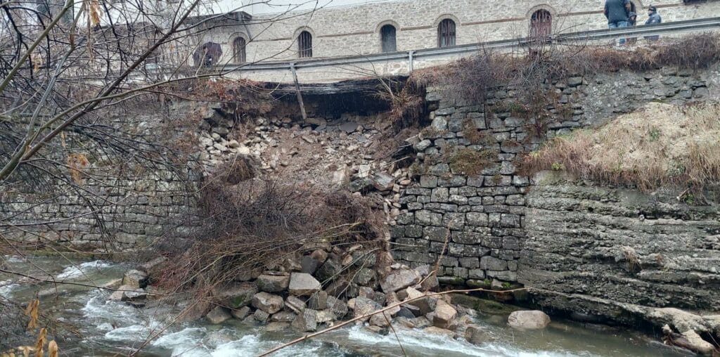 „След пропадане тази нощ в района на Троянския манастир на част от подпорната стена пътят Орешак-Черни Осъм е компрометиран. Пропаднало е част от пътното платно и има видими пукнатини по асфалтовата настилка. Участъкът от пътя бе незабавно обезопасен, като едното платно за движение е затворено. Информирах областния управител за ситуацията и обсъдих с г-н Славчев действията за търсене на средства от Междуведомствена комисия по бедствия и аварии. Започна подготовка на изискуемите документи. Разпоредих да бъде направен оглед от геодезист и незабавно да бъде възложено проектиране на подпорната стена за укрепване на проблемния участък. Община Троян апелира преминаващите в този участък автомобили и пешеходци да се движат с повишено внимание.“