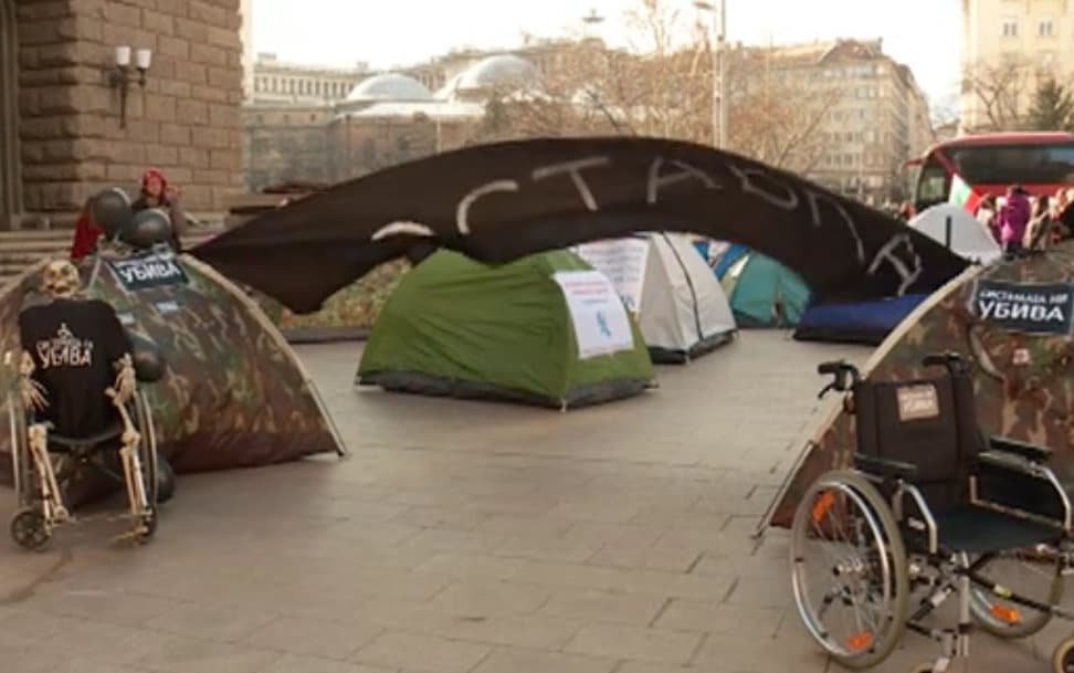 Недоволството им включва безсрочен палатков лагер пред сградата на Министерски съвет. Днес десетки родители от Бургас и Добрич също протестираха. Сред тях и беше Милен Петров, който е с диагноза спинална мускулна атрофия. Заради нея от 12-годишна възраст се придвижва с количка. Сега е на 47 години и още разчита на семейството си.