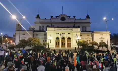 Протест пред старата сграда на Народното събрание. Граждани блокираха движението по столичния булевард „Цар Освободител“.