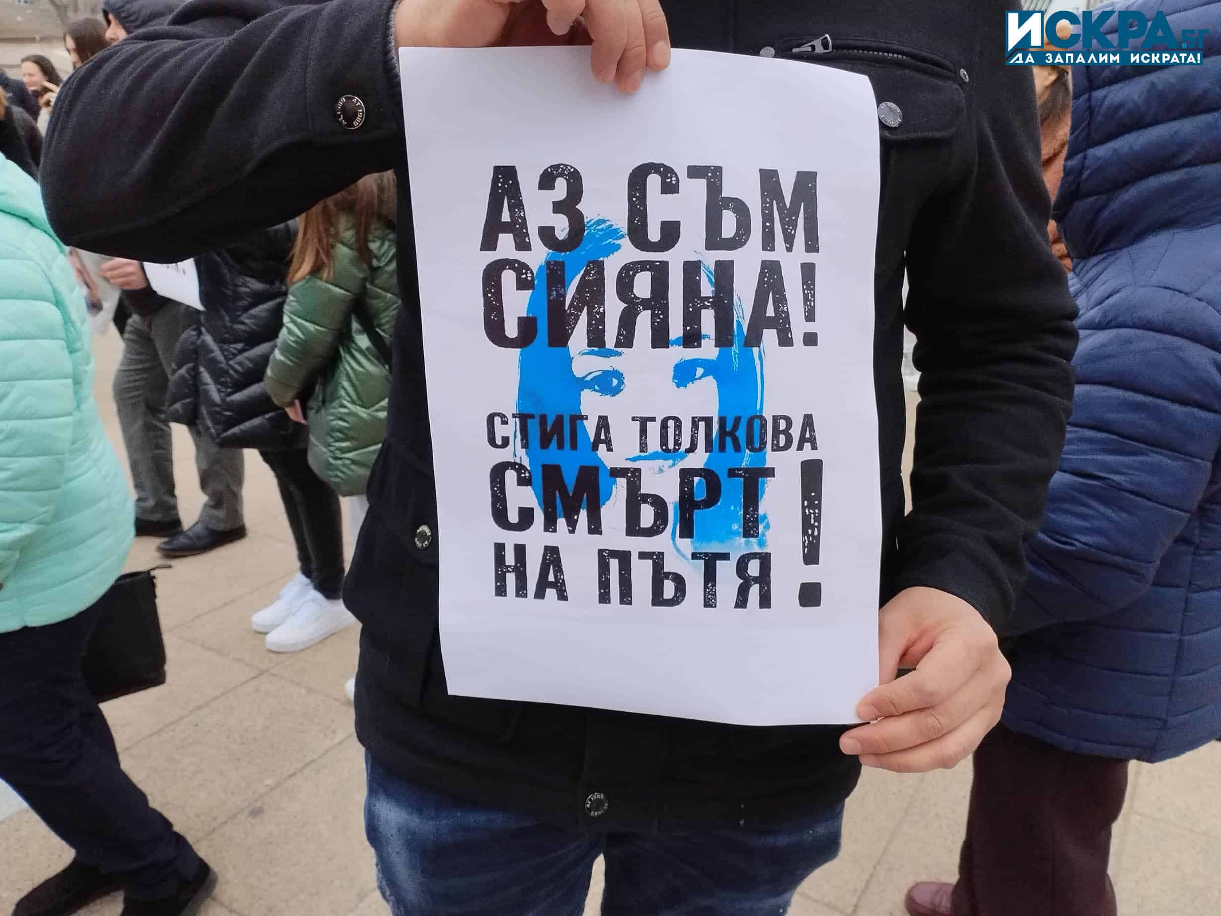 Граждани излязоха на протест под надслов „Корупцията убива бъдещето! Спри я сега!“ пред сградата на Съдебната палата в Бургас. Недоволството е срещу насилието и неспазването на законите, ниските присъди срещу насилието на хора и животни, както и на водачите, предизвикали тежки пътни инциденти. То идва и след смъртта на 12-годишната Сияна, трагично загинала при зверска катастрофа в Плевенско.