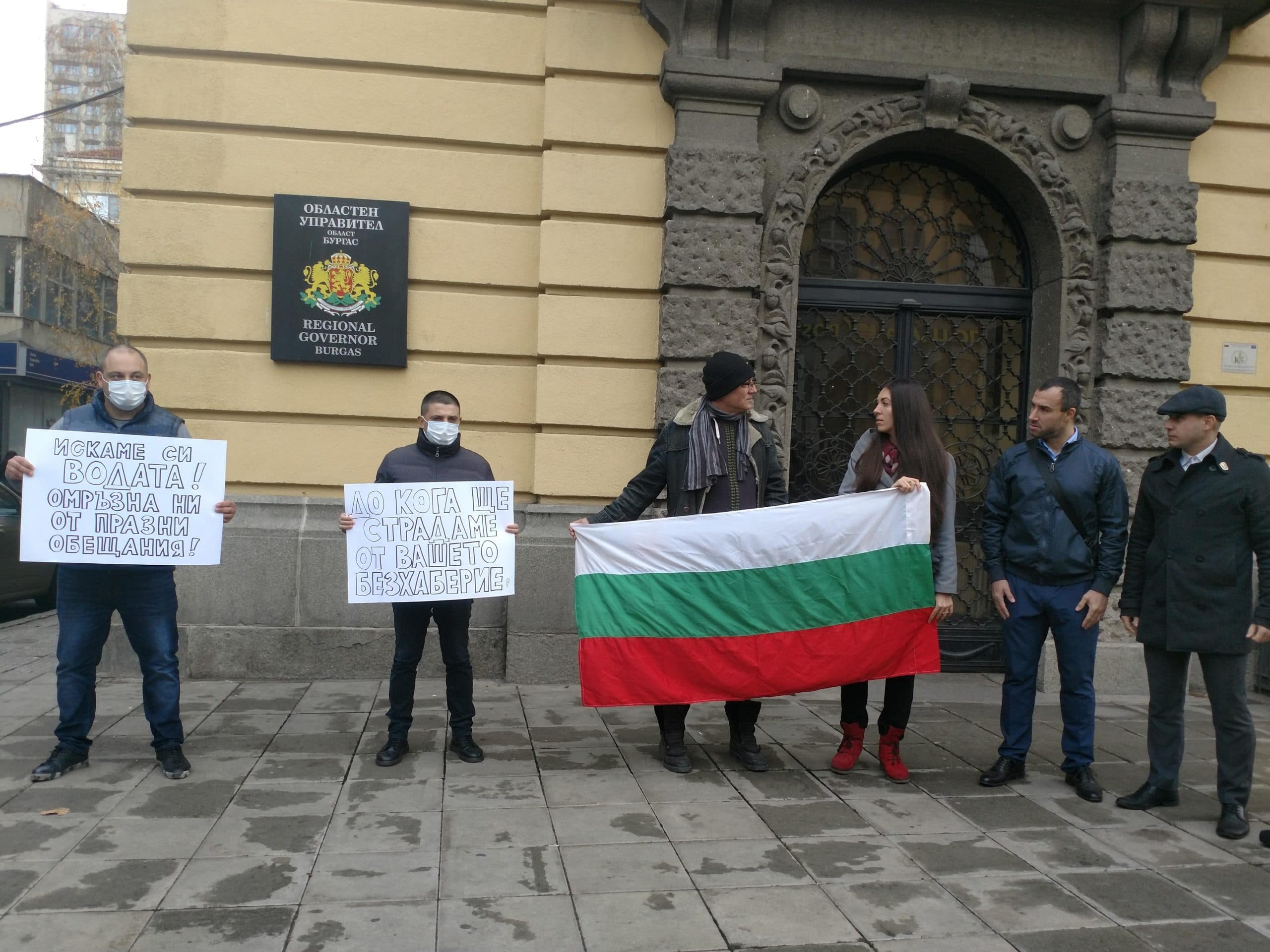 С тези лозунги група граждани се събраха днес на протест пред сградата на Областната администрация в Бургас, настоявайки за адекватни и бързи действия за недопускане на водна криза в района. Недоволството беше организирано от ПП „Възраждане“ и премина под надслов „Искаме си водата!“. То беше подкрепено от представители на Организация за защита на българските граждани (ОЗБГ), както и от жители на Несебър.