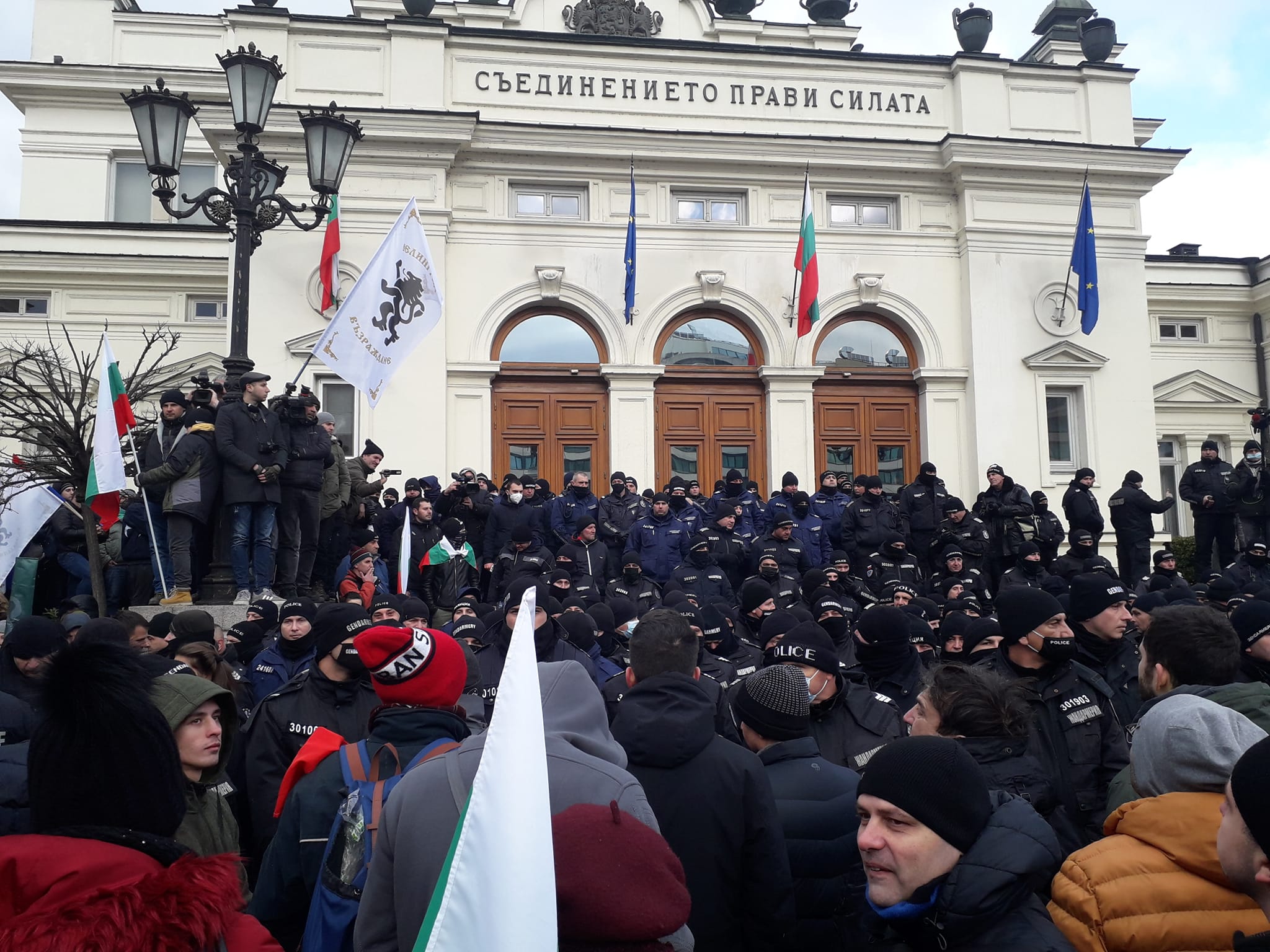 Хилядите български граждани, които са се събрали на националния протест против ограничителните мерки, организиран от „Възраждане“, направиха нов опит да влязат в сградата на Народното събрание. Този път те решиха да минат през страничните входове. Този опит също се оказа неуспешен.