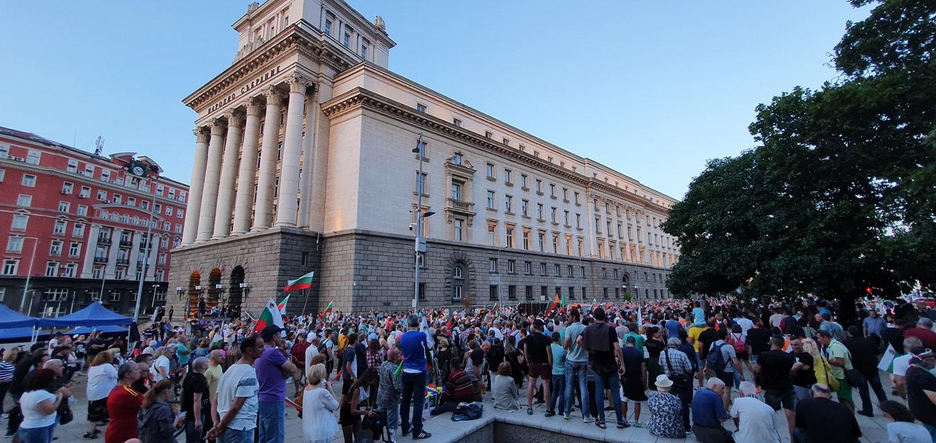 В 32-рия ден на протестите недоволните граждани отново започнаха да се събират около 19:00 часа в Триъгълника на властта. Техните искания остават непроменени – оставка на правителството и на главния прокурор Иван Гешев. Те настояват и за въвеждане на електронно и дистанционно гласуване, както и за свикване на Велико Народно събрание за промени в Конституцията.