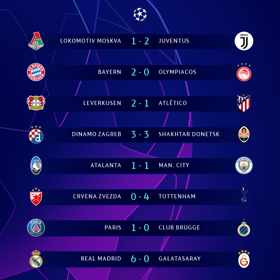 Байерн Мюнхен също се измъчи срещу гръцкия Олимпиакос. Баварците, които имат много проблеми с контузени играчи, успяха да поведат чак в 69-ата минута чрез дежурния голмайстор Робърт Левандовски. Той се разписа след центриране на Кингсли Коман отдясно, а в 89-ата минута точка на спора сложи хърватското крило Иван Перишич след груба грешка на гръцката защита. Така с четири победи от четири мача, Байерн Мюнхен също не може да бъде изместен от първите две позиции в групата.
