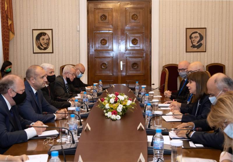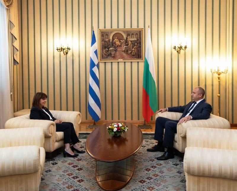 Президентът Румен Радев проведе среща с гръцката си колега Катерина Сакеларопулу в рамките на провеждащата се в София Среща на върха на Инициативата „Три морета“, на която държавният глава е домакин днес и утре.