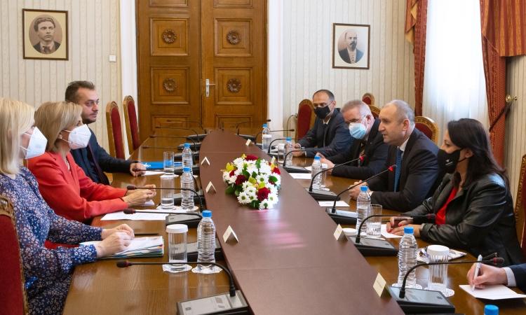При посещението си в България днес еврокомисарят по здравеопазването Стела Кириакиду проведе среща и с президента Румен Радев. Двамата обсъдиха успеха на имунизационната кампания, като според държавния глава тя зависи от възможността за избор на ваксина, както и от убедеността на хората в безопасността на препаратите както в краткосрочен, така и в дългосрочен план.