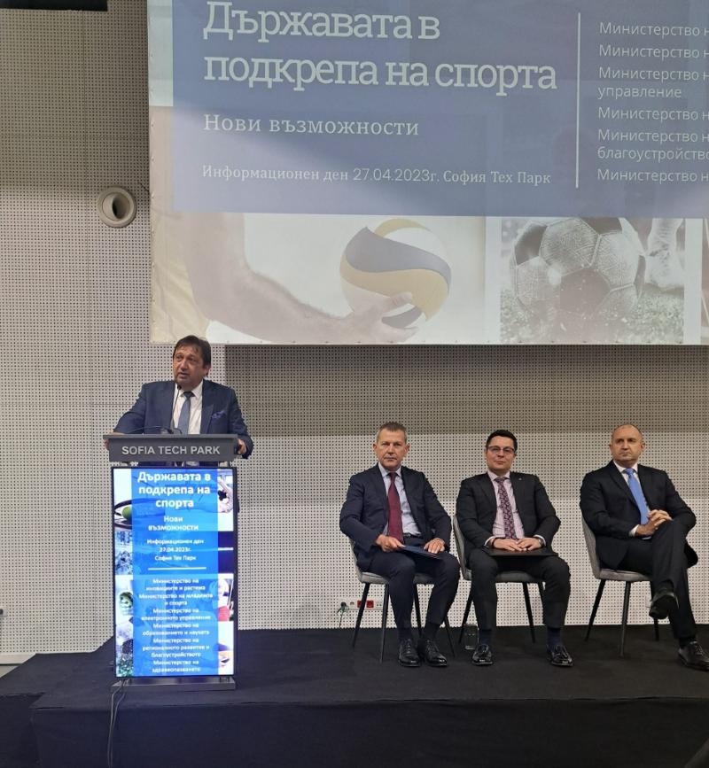 В днешния форум участваха министрите на иновациите и растежа Александър Пулев, на младежта и спорта Весела Лечева, на електронното управление Георги Тодоров, на образованието и науката Сашо Пенов и на регионалното развитие и благоустройство Иван Шишков, както и представители на спортни организации, местната власт, компании и управляващи органи на програми за финансиране от ЕС.