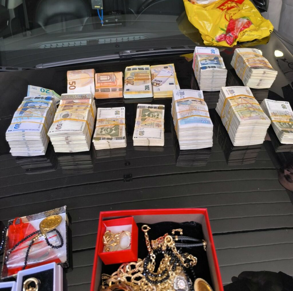 При процесуално-следствените действия в Разградска и Хасковска области са намерени множество мобилни телефони, СИМ-карти на български, македонски и турски оператори, лаптопи, флашпамети. Иззети са и документи, свързани с парични преводи, банкови карти, близо килограм златни накити на стойност около 122 хиляди лева, както и над 335 хиляди лева в различни валути и други вещи, относими към разследваната престъпна дейност.