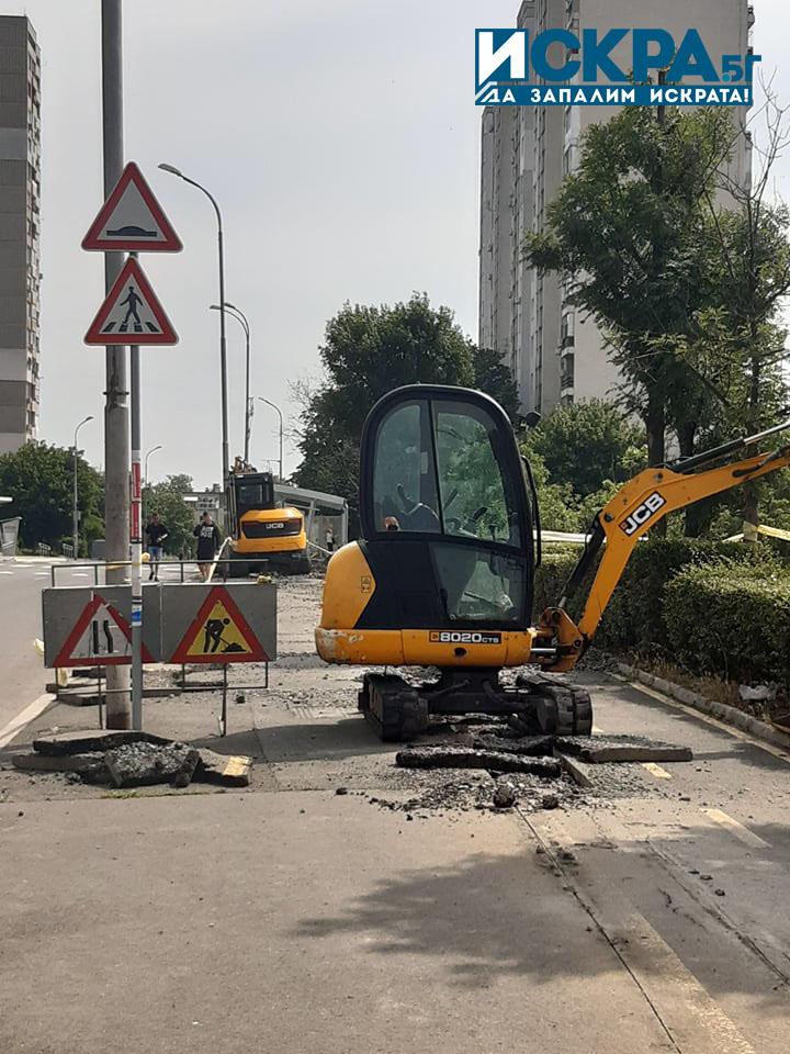 Ремонт озадачи жителите на бургаския комплекс „Славейков“. Два багера са разкопали гладката велоалея, разположена до булевард „Тракия“, в района на една от автобусните спирки на градския транспорт.