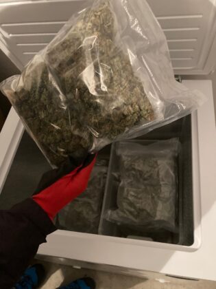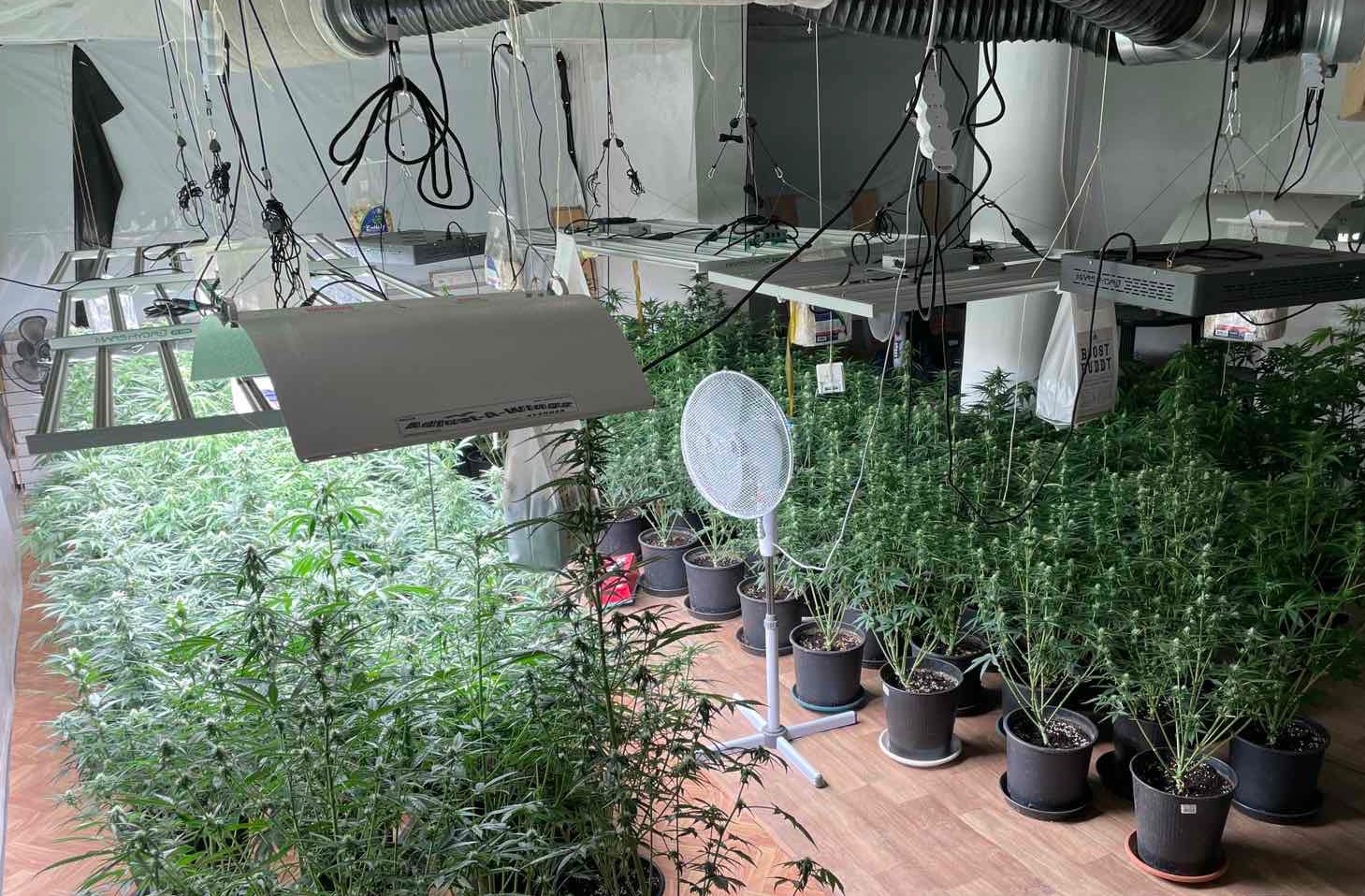 Последвали процесуално-следствени действия в две ползвани от мъжа жилища в квартала. В апартаментите са били установени помещения, обособени за отглеждане на наркотични растения – оборудвани със системи за вентилация и осветление. Иззети са били 145 засадени растения от рода на конопа и множество пакети с разпределени в тях над 2 кг суха тревиста маса, реагираща на марихуана при полеви наркотест. Назначени са били експертизи.