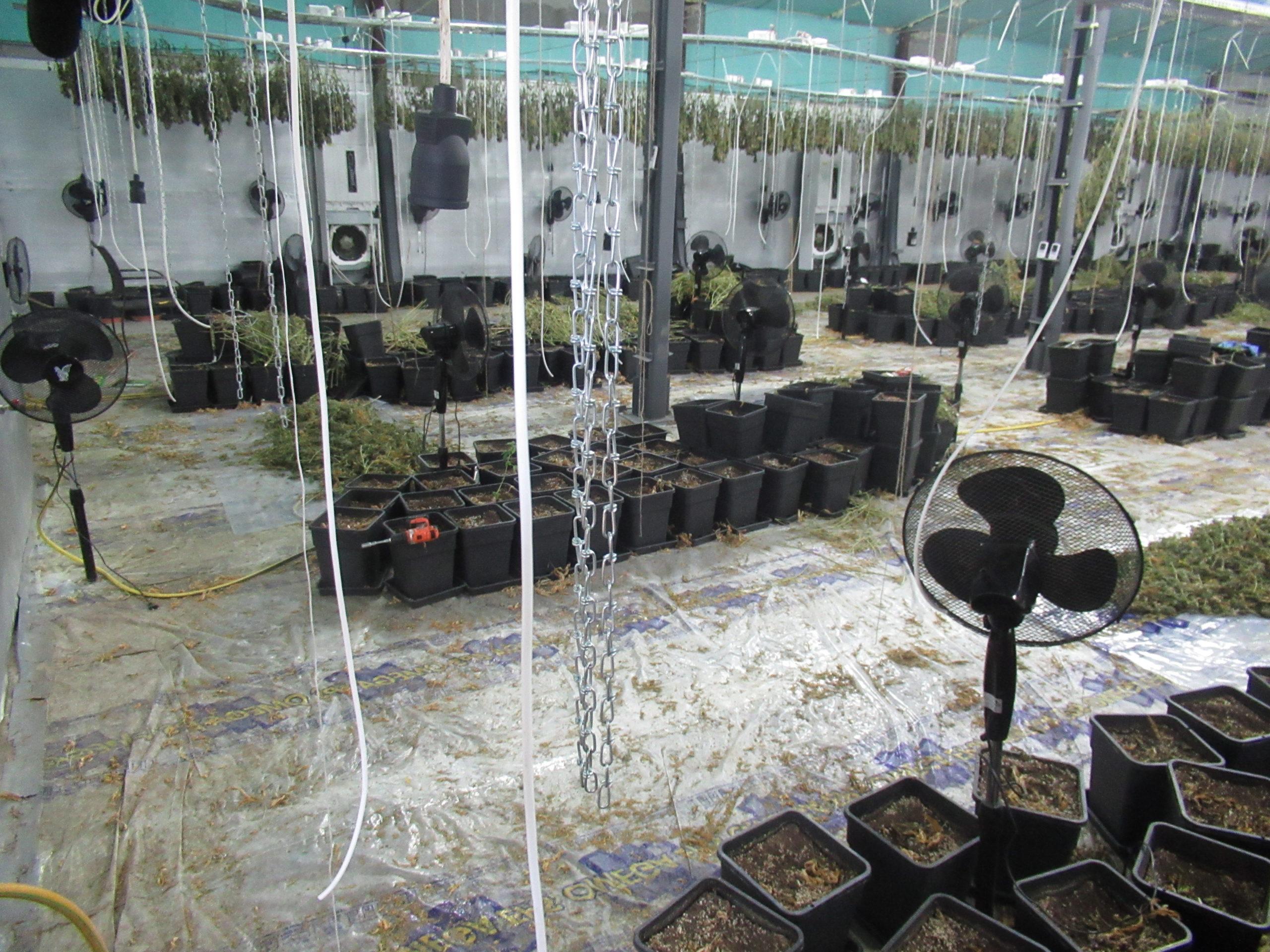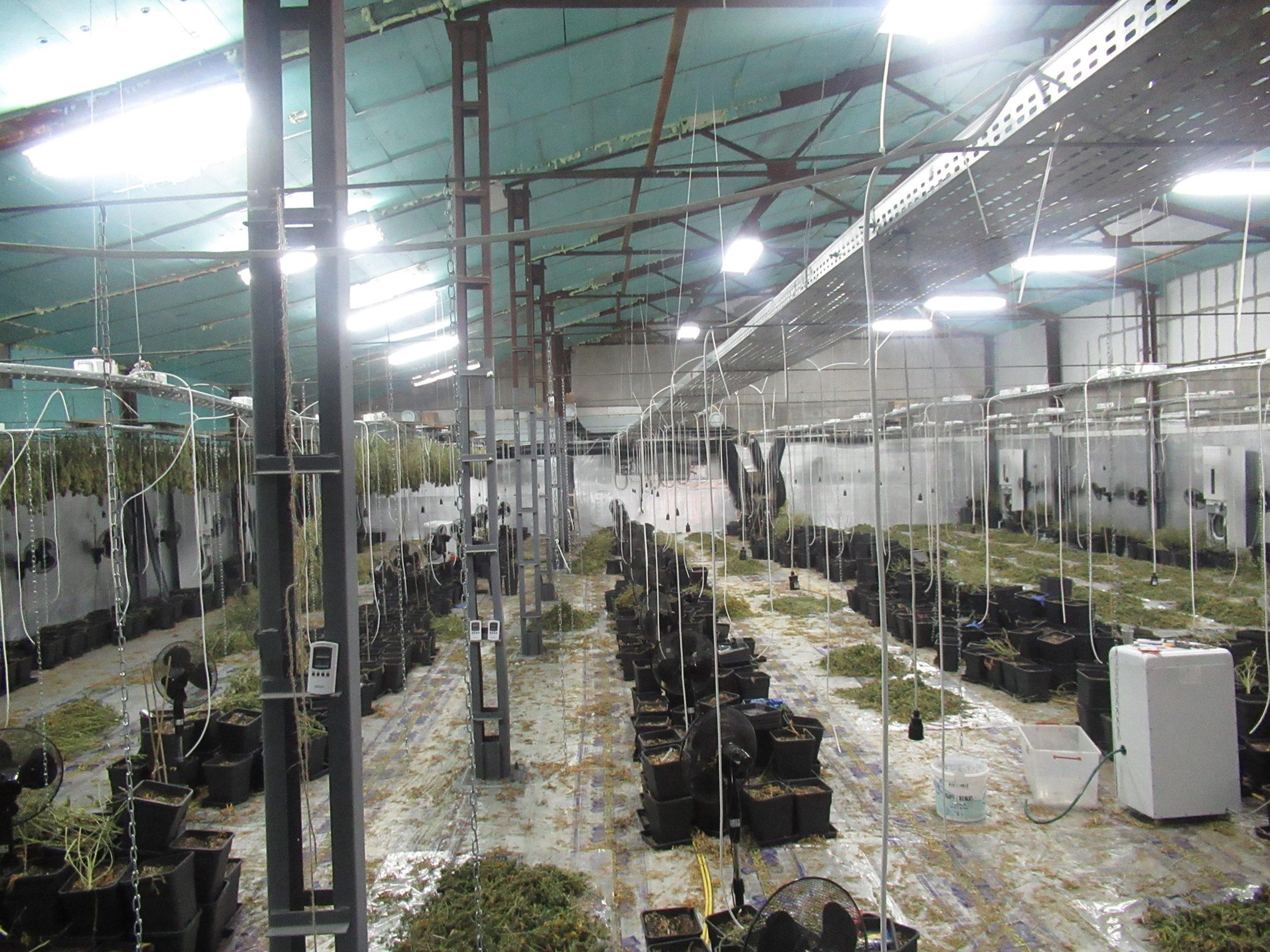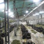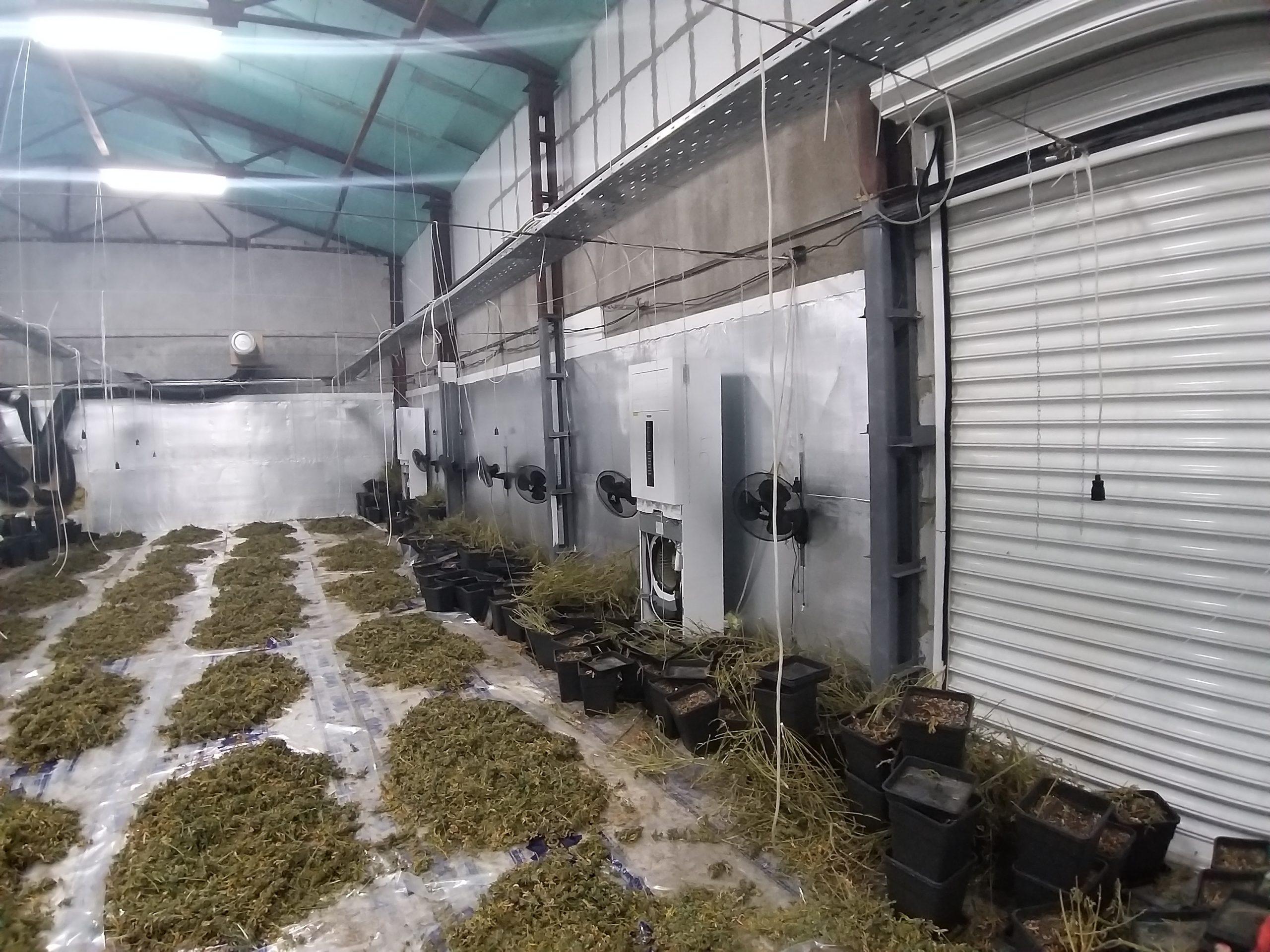 В две халета в административна постройка са били открити 1743 саксии, система за поливане, отопление и вентилация, както и над 140 килограма марихуана.