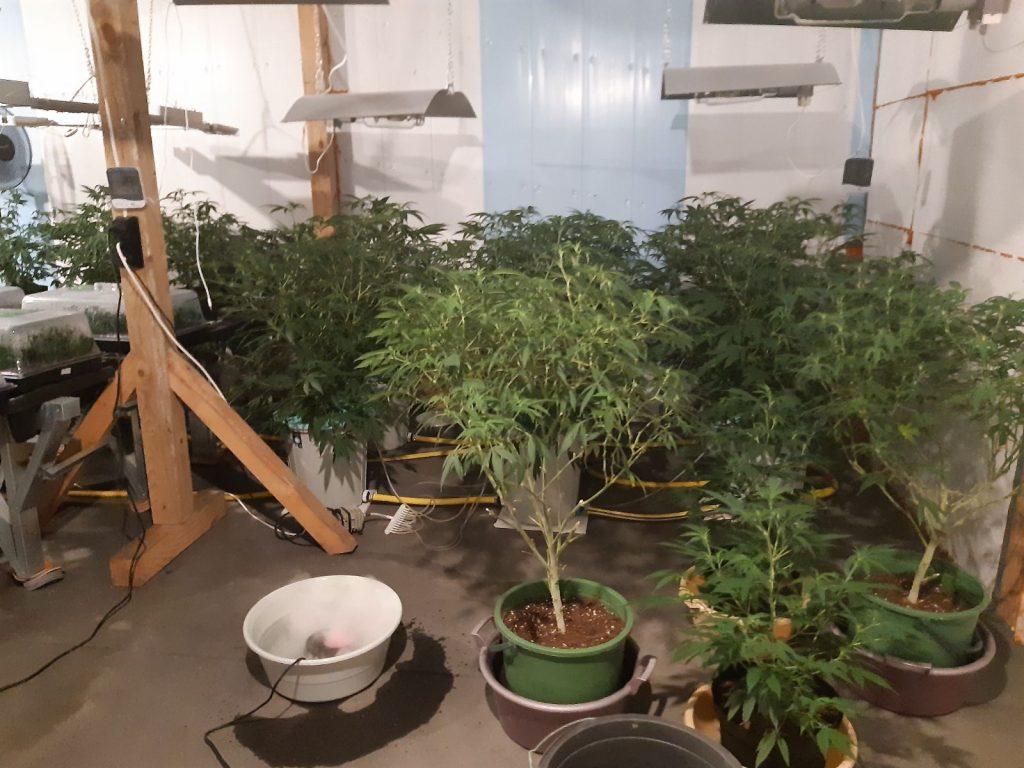 Обособени били помещения за пикиране на разсада, за отглеждане на растения в начален етап и в напреднал етап на развитие. Всичко било оборудвано със системи за контрол на температурата, влажността на въздуха, осветление, платформи за сушене, течни торове, саксии и инструменти за обработка. Общото количество на откритите растения в начален и напреднал стадии на развитие е близо 1200 броя. В една от стаите са намерени чували с общо 32 кг суха листна маса от глави и съцветия, които били подготвени за дистрибуция.