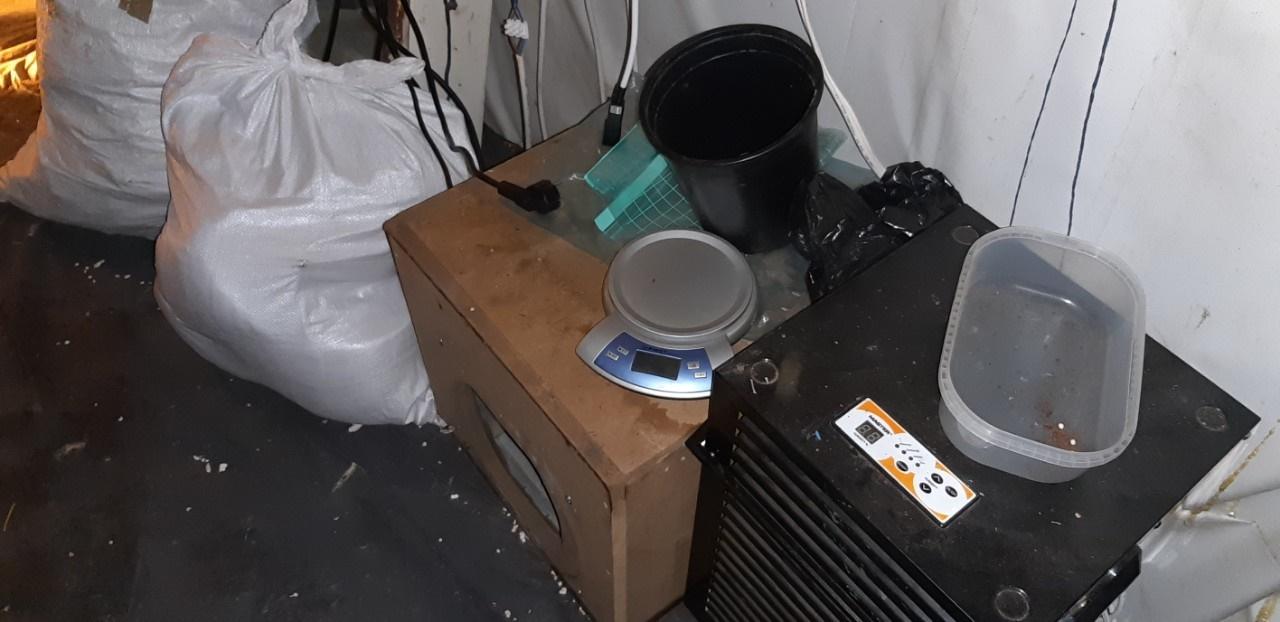 В оранжерията са открити: над 324 растения в саксии; сушилня с няколко рафта на които са били оставени за сушене глави канабис; множество чували с тор; везни. Помещението било оборудвано с осветление и други високотехнологични приспособления за отглеждане на марихуана.