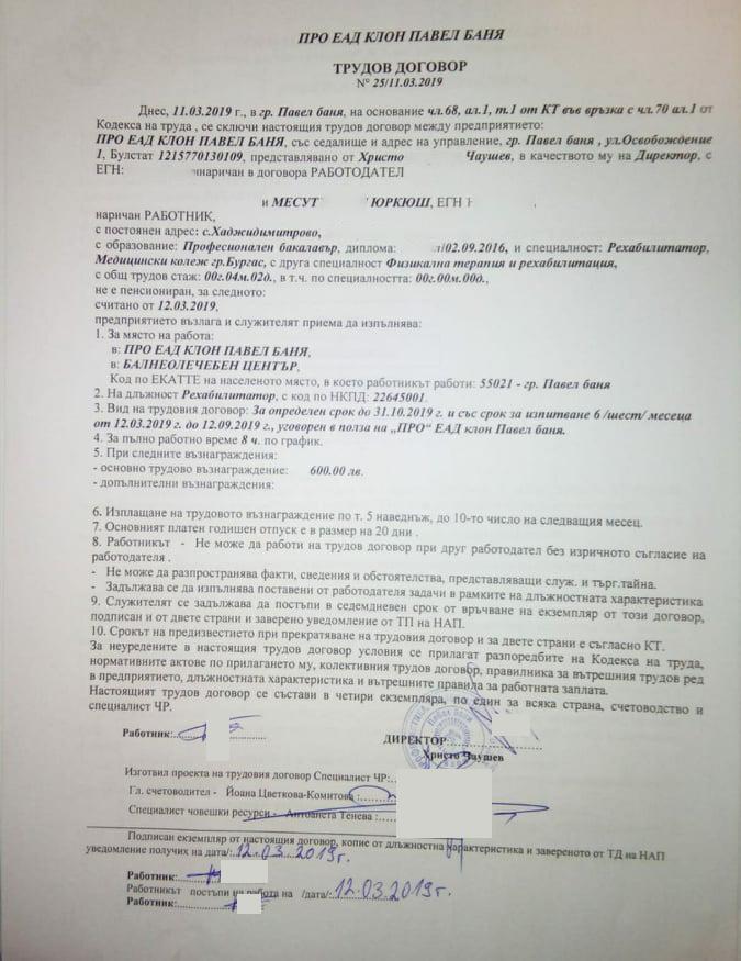 След два дни той е уволнен! Причината: по документи – „Прекратяване на трудов договор със срок на изпитване, уговорен в полза на „ПРО“ АД клон Павел баня, преди изтичане на срока за изпитване“; реално според свидетели – поради факта, че е отказал да изтрие публикацията си от социалната мрежа.