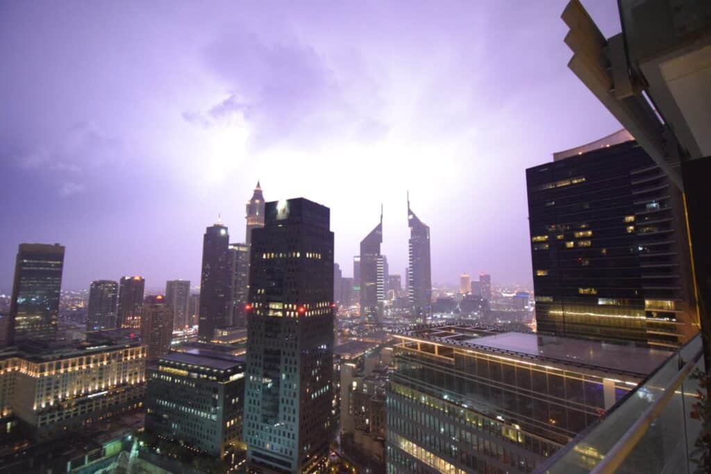 Обединените арабски емирства, които в голяма степен разчитат на енергоемки инсталации за обезсоляване на вода, извършват сеитба на облаци, отчасти, за да увеличат количеството на намаляващата и ограничена подпочвена вода. Дъждовете започнаха късно в понеделник, като напоиха пясъците и пътищата на Дубай с около 20 милиметра дъжд, според метеорологичните данни, събрани на международното летище в Дубай. Бурите се засилиха около 09:00 часа местно време във вторник и продължиха през целия ден, като изсипаха още дъжд и градушка върху пренаселения град. До вторник вечерта за 24 часа в Дубай са паднали повече от 142 милиметра валежи. Средно на година на международното летище в Дубай, което е център на превозвача на дълги разстояния Emirates, падат 94,7 милиметра дъжд.