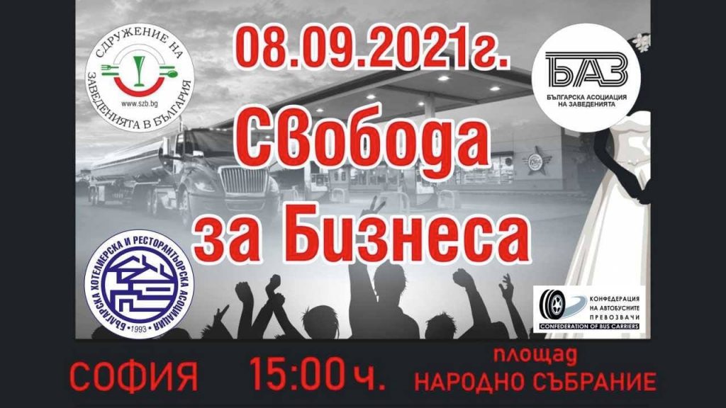 От Българската хотелиерска и ресторантьорска асоциация /БХРА/ обявиха, че търпението им се е изчерпало и на 8 септември ще протестират на столичния площад „Народно събрание“.