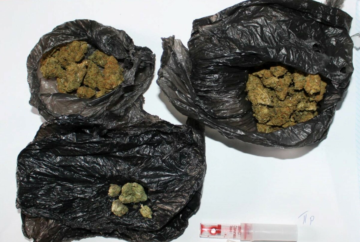 У 36-годишния били открити плик с бели бучки, реагиращи на амфетамин, с общо тегло около 135 грама и три плика с около 20 грама тревиста маса, реагираща на канабис.