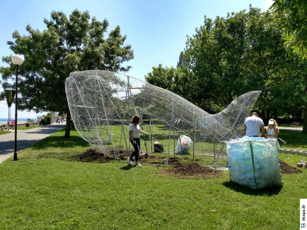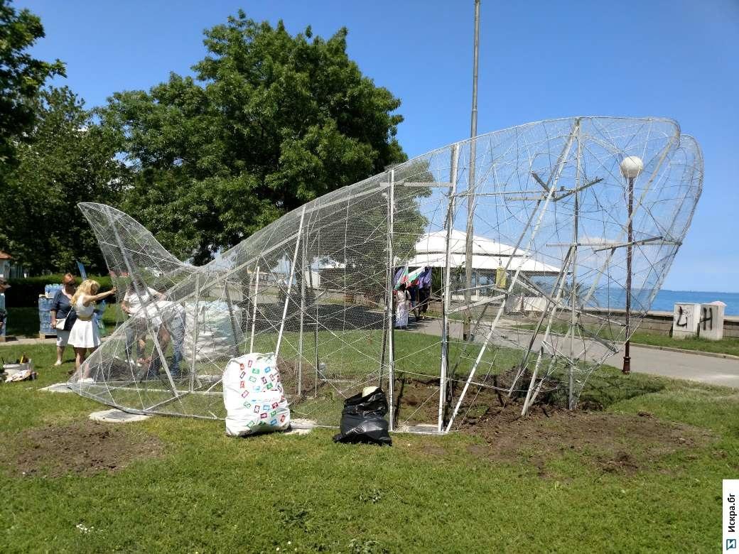 Огромен рибок, който „яде“ пластмасови бутилки, „изплува“ до сърф базата в Морската градина на Бургас, видя журналист на Искра.бг. Той е част от фестивала „Рециклирай с фантазия“, организиран от Общината по повод „Европейския ден на морето“ и „Зелени дни в Бургас“.