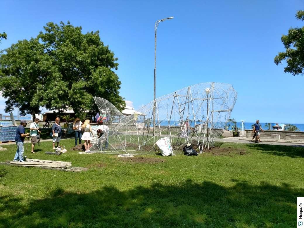 Арт инсталацията е с размери 8 на 10 метра и е дело на бургаския творец и председател на Дружеството на художниците в града – Добрин Вътев. В 17:30 часа днес трябва да бъде официално открита.