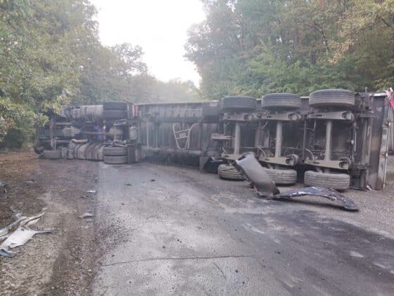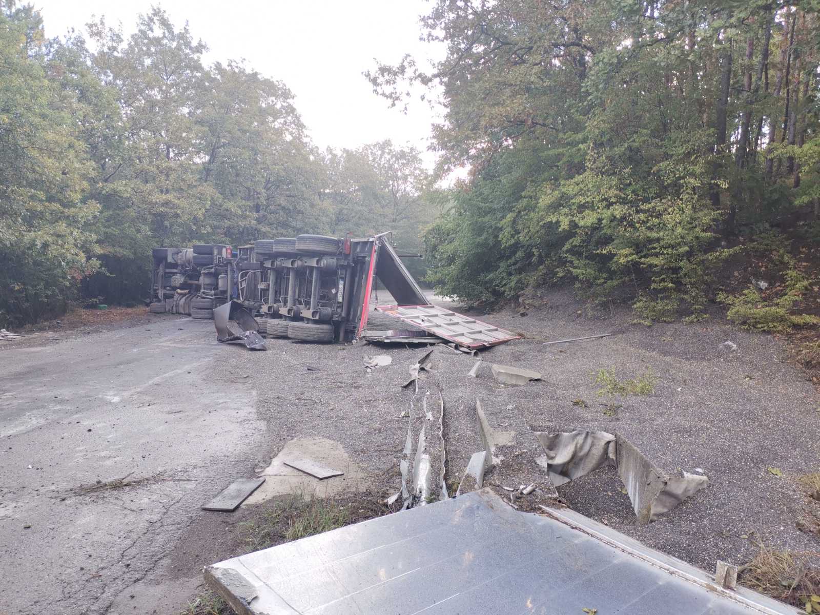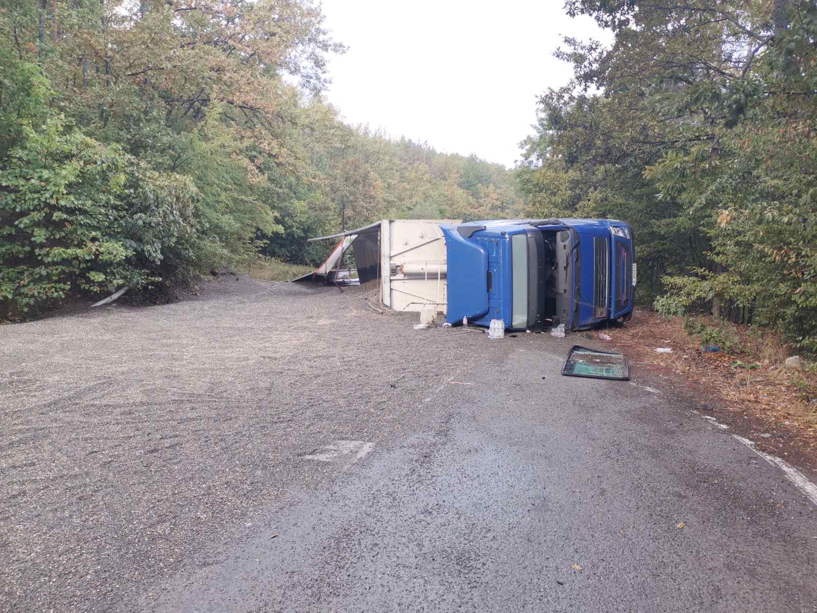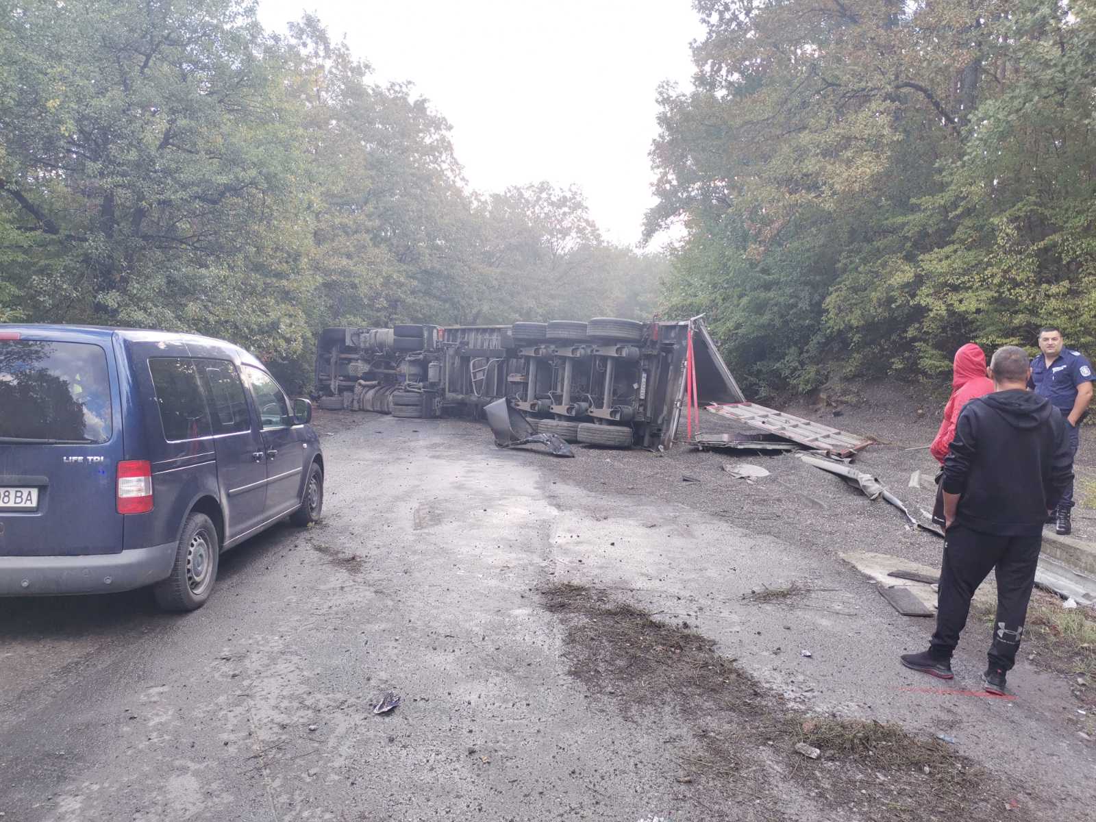 Злополуката е станала тази сутрин. Тирът е с българска регистрация, а водачът – българин. Според първоначалните данни той не е пострадал сериозно, като е бил транспортиран в болница за медицински преглед.