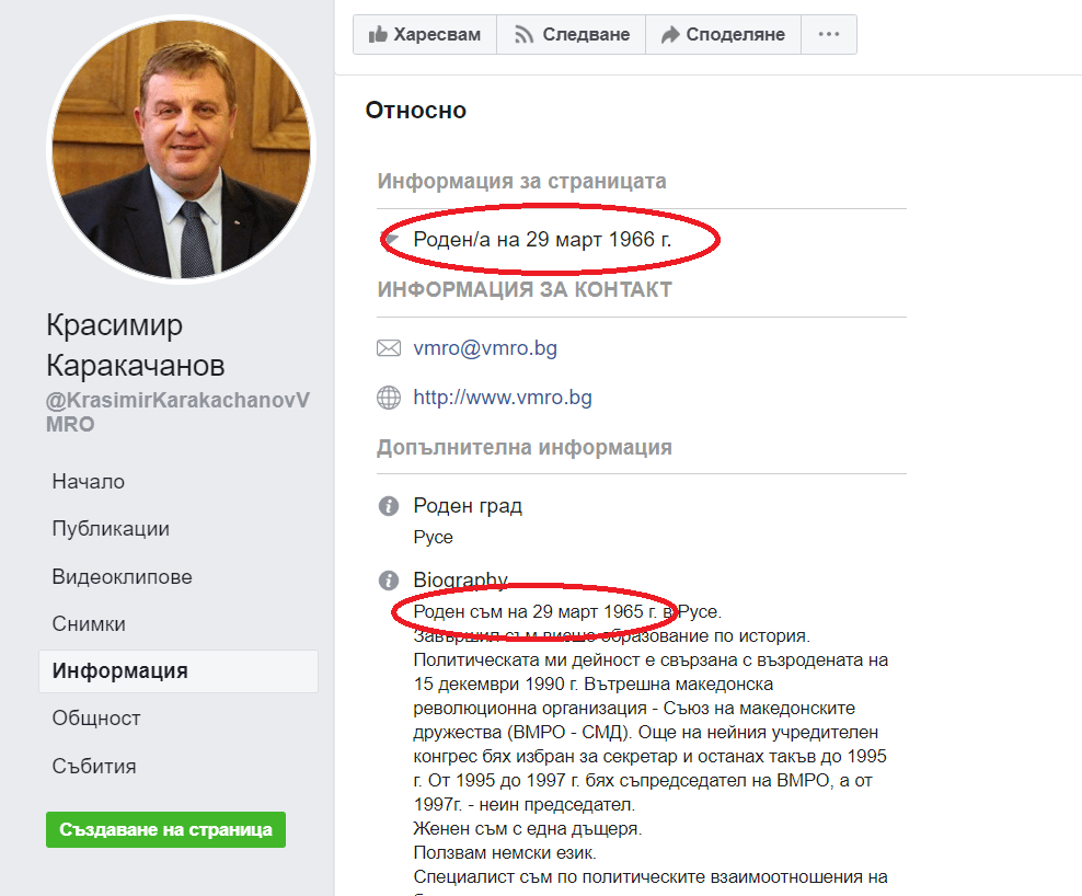 От Фейсбук страницата на Красимир Каракачанов не става ясно кога точно е роден.