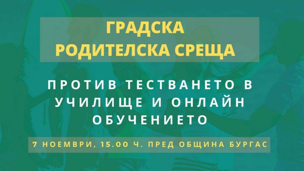 „Обявяваме се против тестването на децата в училище и против онлайн обучението! Не сме съгласни децата ни да бъдат тествани по какъвто и да е начин за наличие на COVID-19 в училищна среда. Не смe съгласни и с принудителното преминаване към онлайн обучение поради отказ от тестване“, категорични са организаторите.