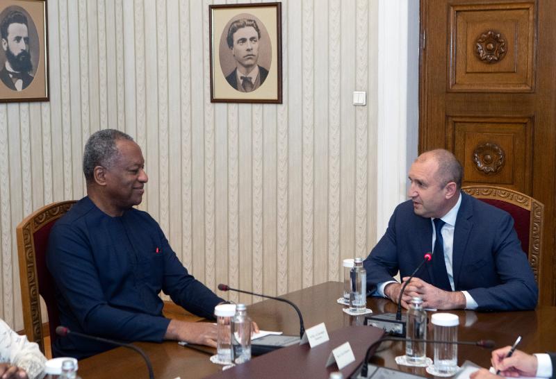 Перспективите за сътрудничество в областта на икономиката, енергетиката, информационните технологии, образованието и сигурността бяха във фокуса на разговора между президента Румен Радев и министъра на външните работи на Федерална Република Нигерия Джефри Ониеама, който е на работно посещение у нас.