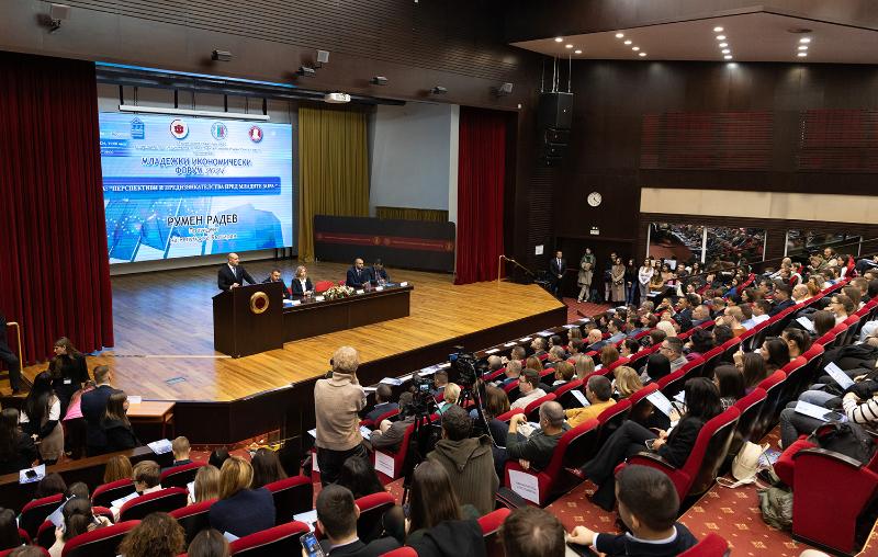 Президентът Румен Радев се обърна към студентите от УНСС на 21-ото издание на Младежкия икономически форум с ключово послание – младите хора трябва да поемат отговорност за напредъка на България и да не оставят решенията за бъдещето си в ръцете на други. Президентът призова младите да не чакат някой друг да поеме отговорност за развитието на страната. Той подчерта, че младежите, които изберат да останат в България, имат уникалния шанс да допринесат за нейния напредък. Според него това е въпрос не само на лична амбиция, но и на дълг към бъдещето.