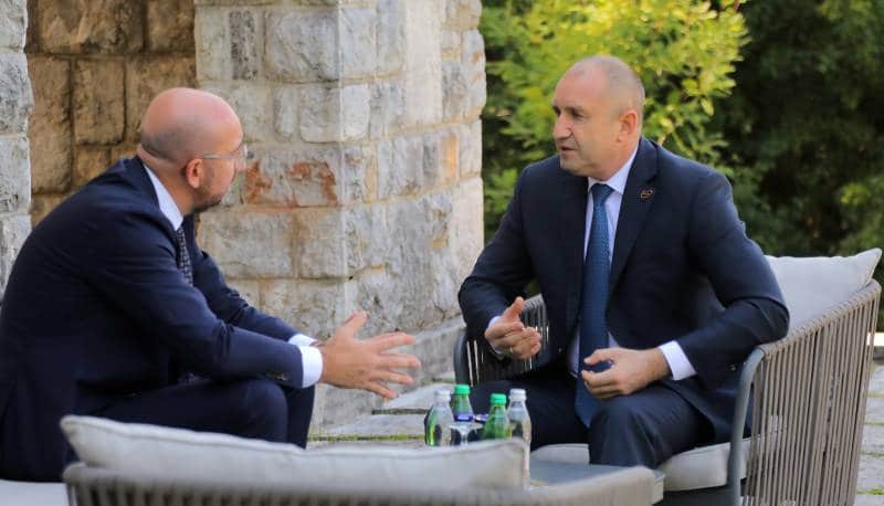 Президентът Румен Радев проведе среща на четири очи с председателя на Европейския съвет Шарл Мишел в Словения.