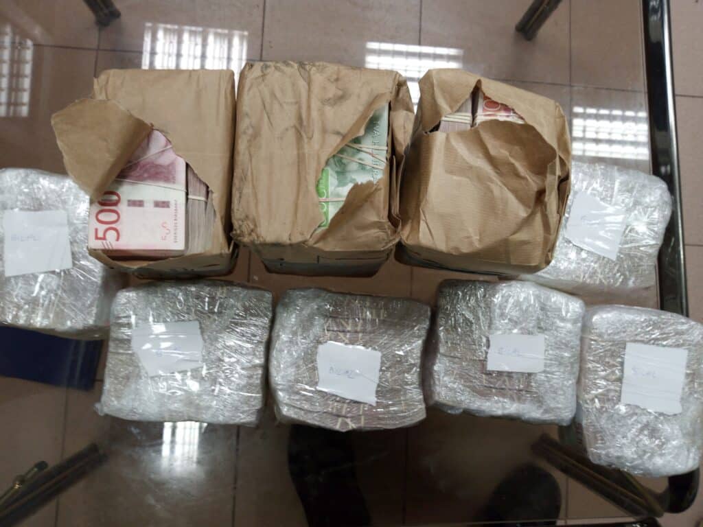Инспекторите са извършили физическа проверка, при която в средата на товарния отсек, под чувал с картофи, са намерили бял плик, съдържащ банкноти на обща стойност 71 570 евро.