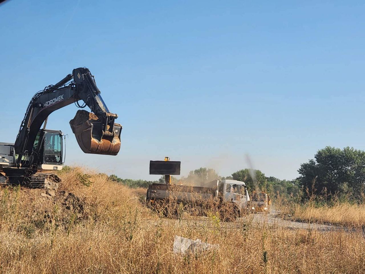 На място работи тежка техника, която извършва запръстяване, за да предотврати разпространението на огъня и да осигури безопасност в района.