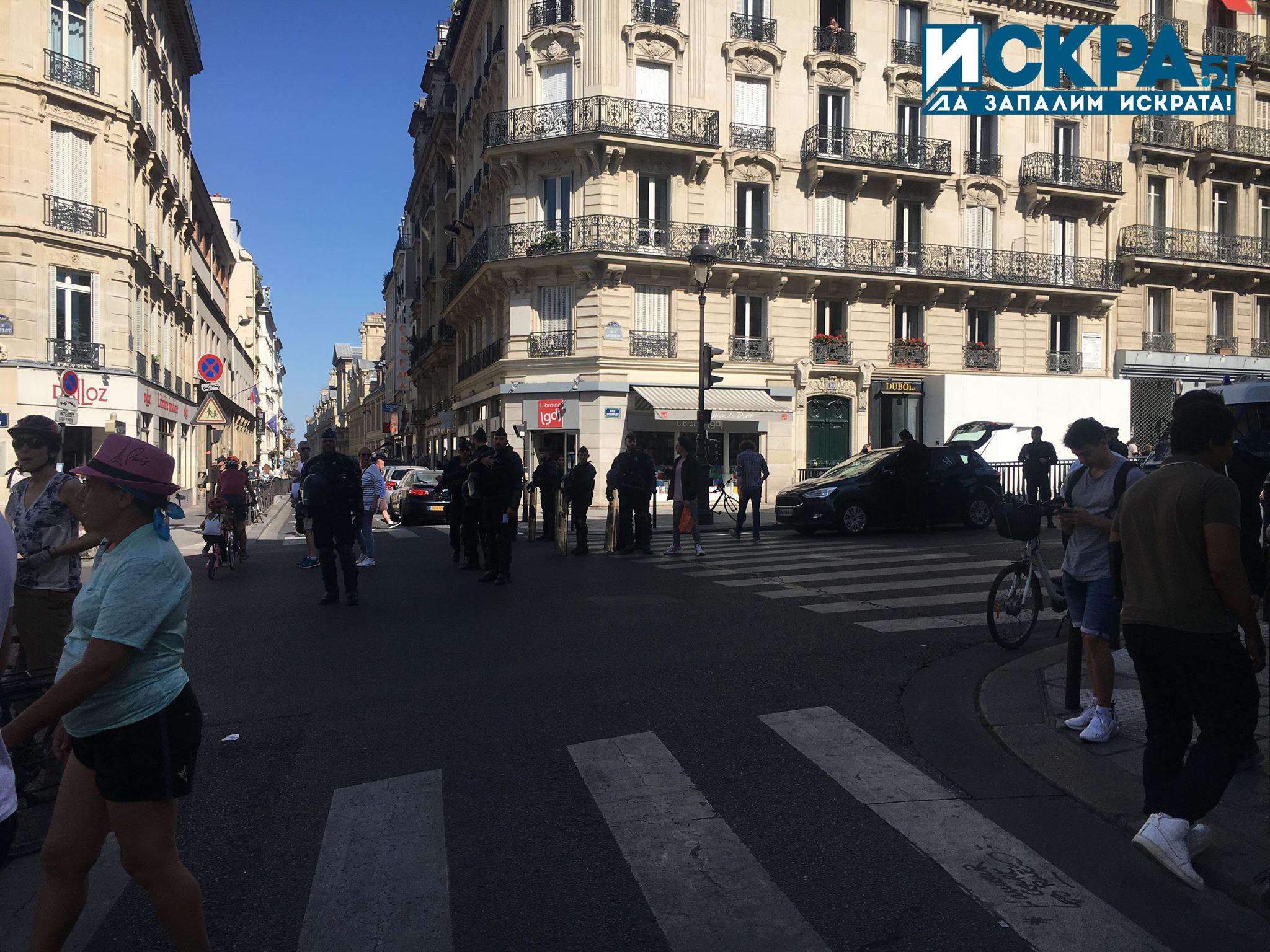 Полицейските сили бяха разположени в няколко части на Париж. От съображение за сигурност бяха затворени няколко ключови за Париж места, сред които Триумфалната арка, Люксембургските градини, музеите Пти и Гран Пале, Пантеонът, а Елисейският дворец беше достъпен само с предварителна резервация.