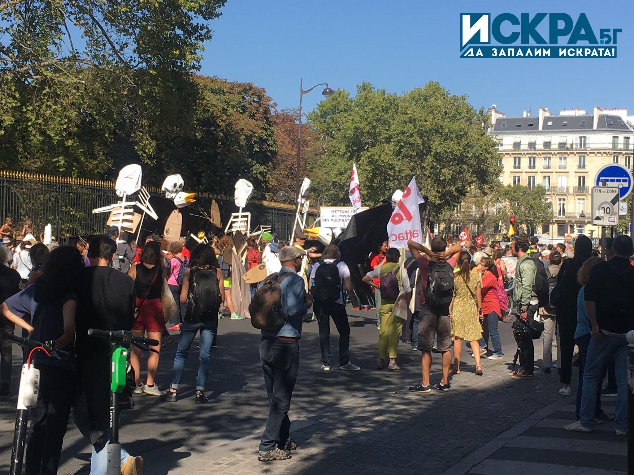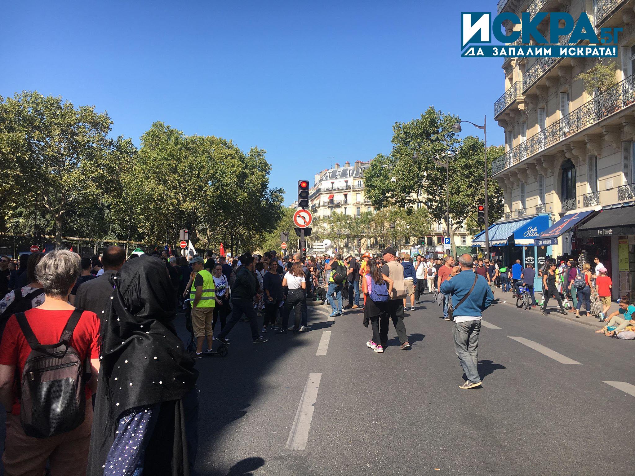 Над 100 души бяха арестувани по време на съботните протести в Париж. Там паралелно недоволството си изразиха „жълтите жилетки“, природозащитници и тези срещу пенсионната реформа.