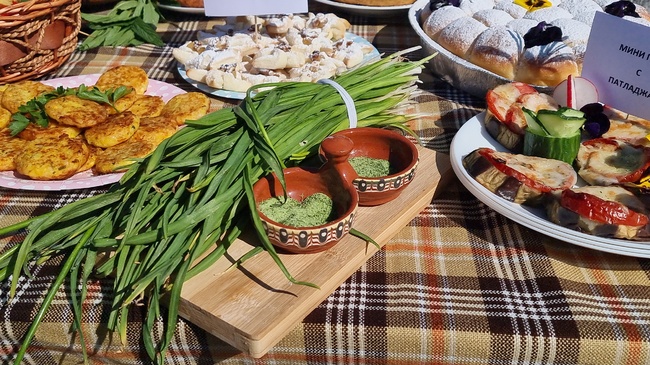 Щандът на читалището включваше още кашкавал, сирене, заешки курбан и разнообразни разядки – всичко подправено с характерната за Югоизточна България самардала. Впечатляваща беше и украсата: макет на селски двор с къща и кладенец, изработени от хляб, както и кокошки и гъби, оформени от яйца, домати и репички върху канапе от марули.