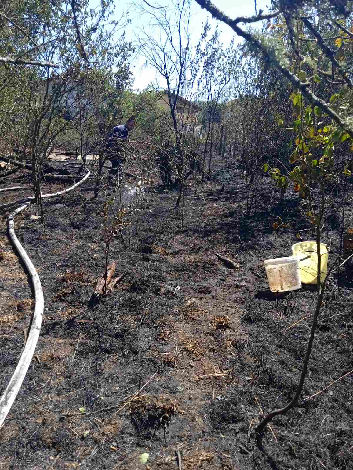 Злополуката е станала около 13:39 часа днес. При сигнал за горящи сухи треви и растителност е бил изпратен един противопожарен автомобил и трима огнеборци. За съжаление вследствие на задимяването е починал 71-годишен мъж, обитавал вила в района.