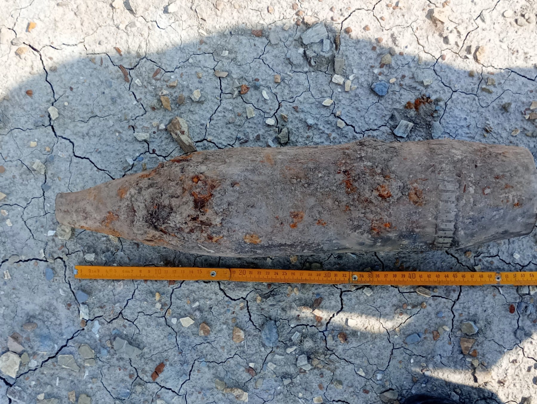 Снарядът е бил с дължина около 500 мм., без означения и със силно корозирал корпус.