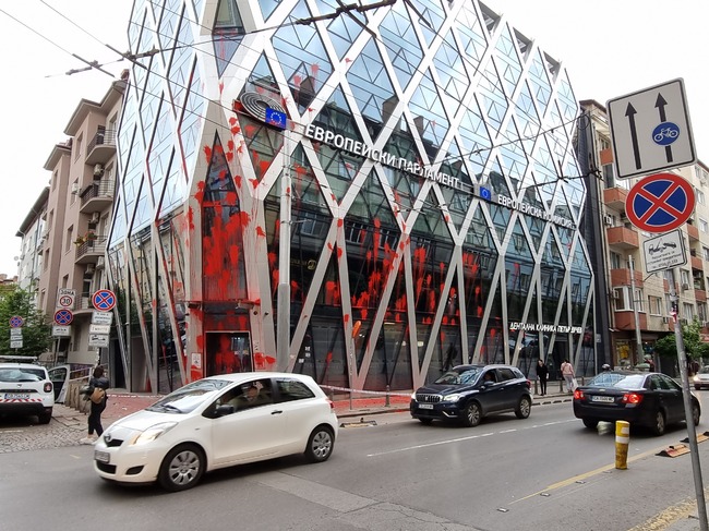 СДВР издирва извършителите, напръскали с червена боя сградата на ЕК, съобщиха от МВР.