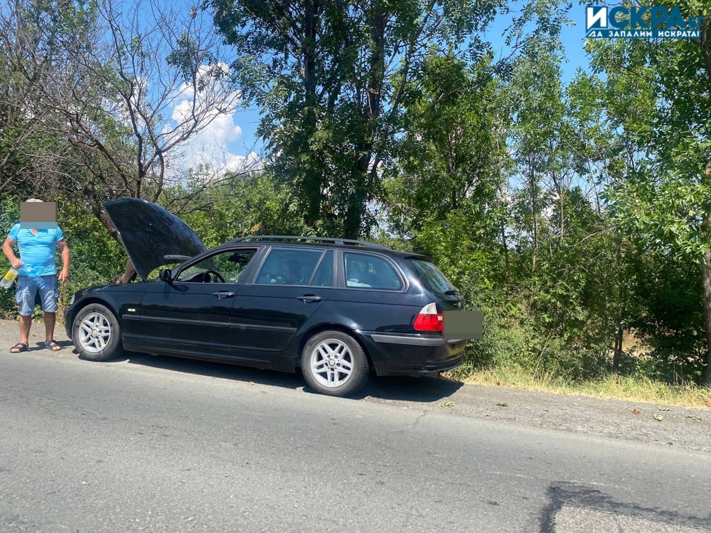 Задръстването продължа и след мястото на инцидента. Там има два аварирали автомобила. Единият е също марка „BMW“ като колата има технически проблеми.
