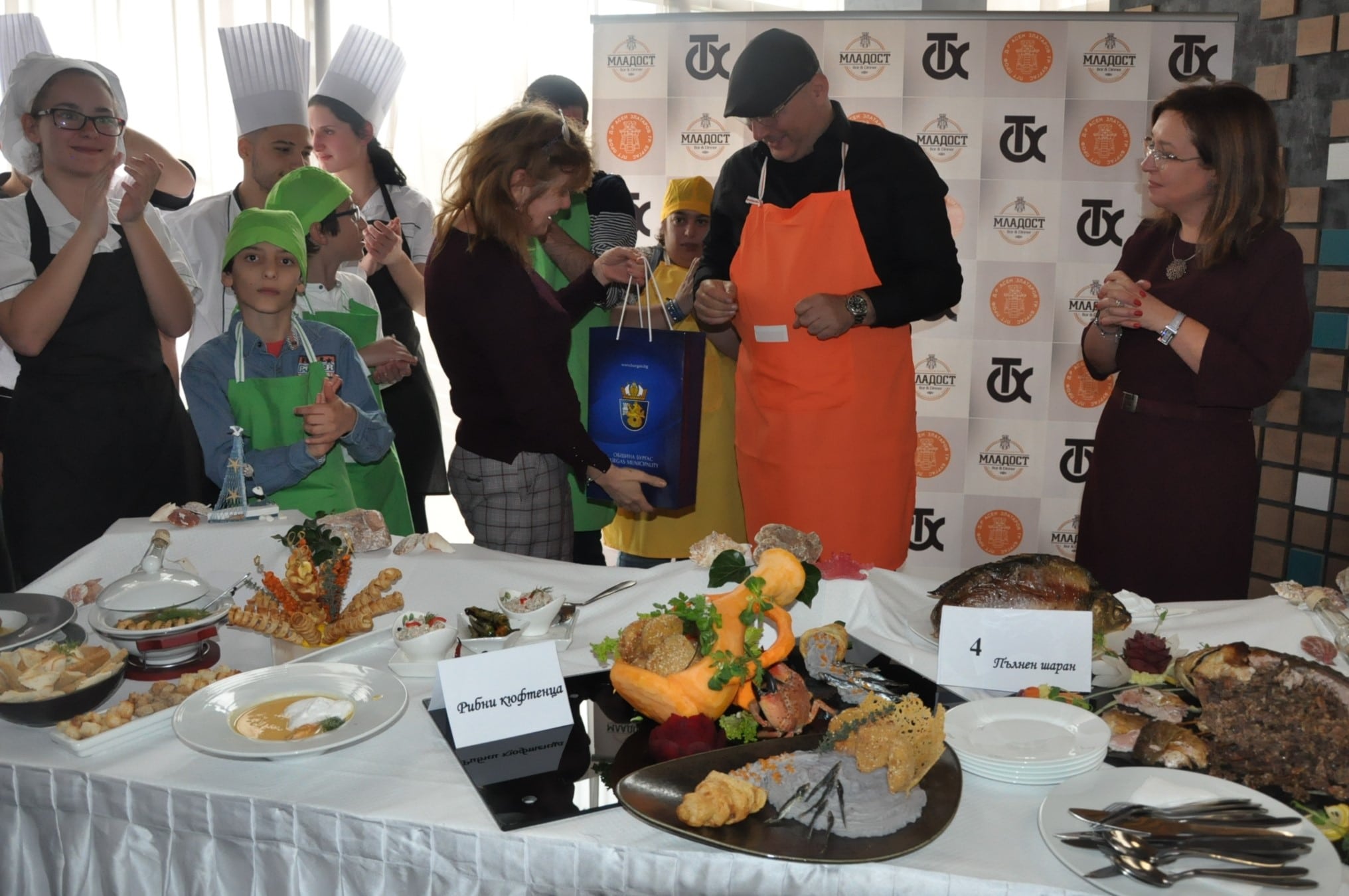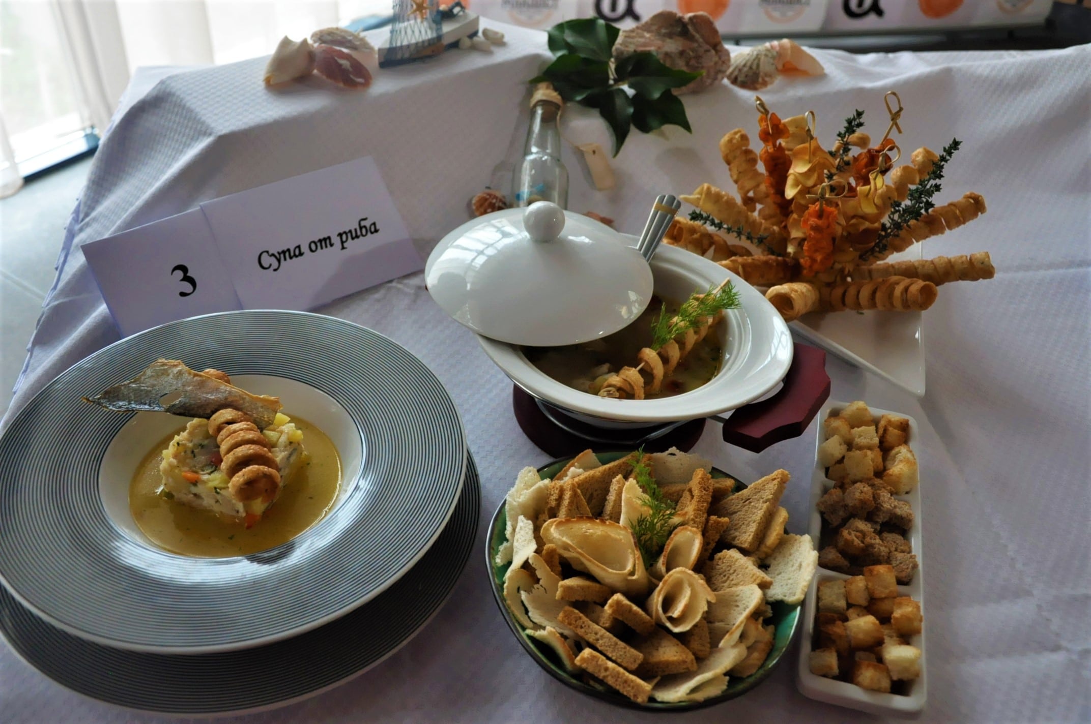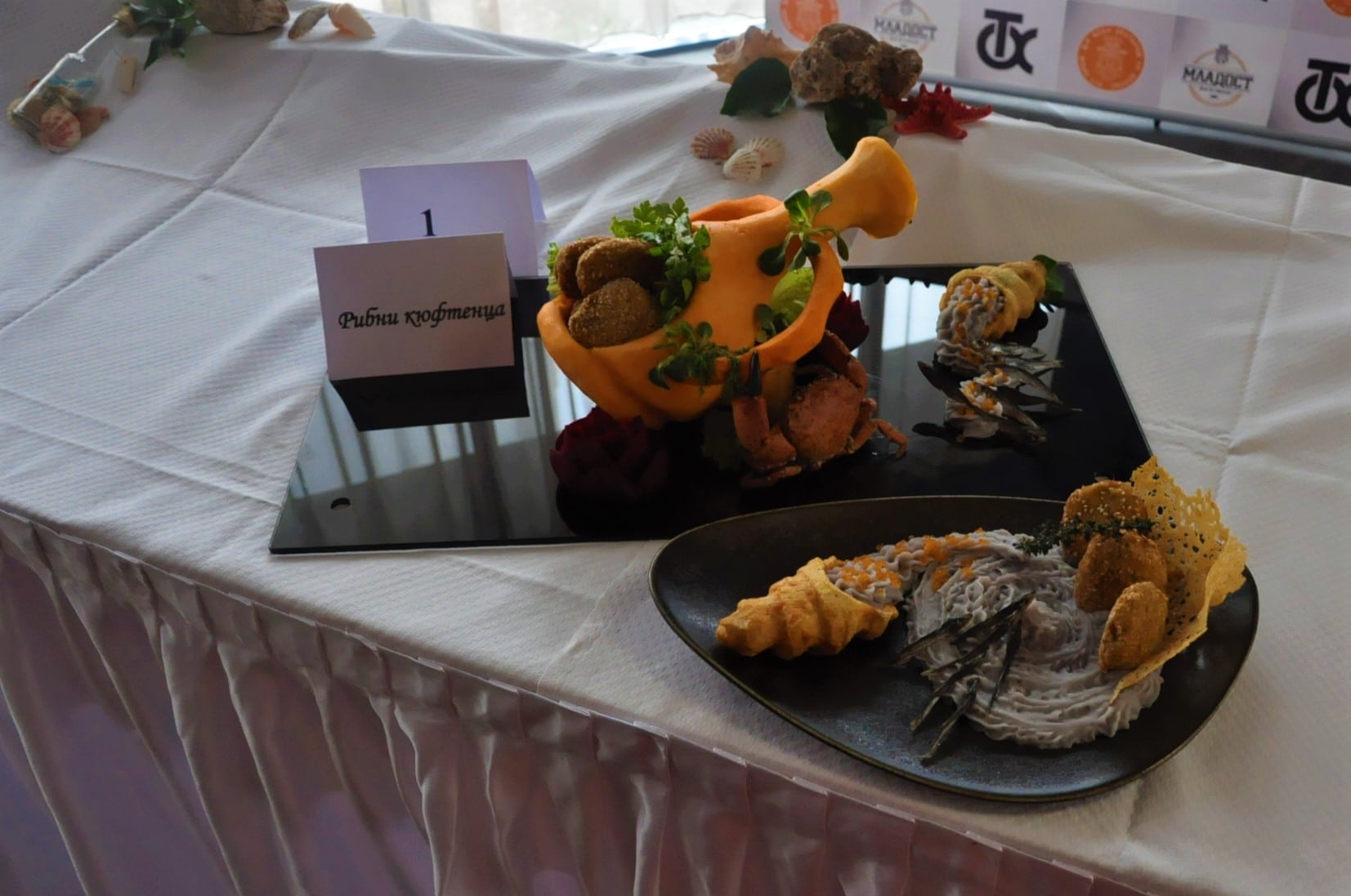На финала младите готвачи представиха изискано сервирани рибни блюда, с възхитителен вкус и нестандартна аранжировка – поднесени в амфора от тиква или рибни кюфтенца, поднесени като кръгли раци.